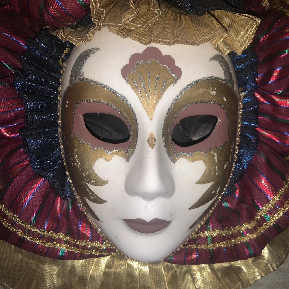 Add a touch of vintage charm to your home décor with this handmade Mardi Gras mask. The colorful porcelain material and intricate painted face make it a perfect decorative piece for any room. At 11 inches in length and 3 inches in height, this wall-mounted mask weighs 1.4 pounds and comes in a unit quantity of one. Celebrate the Mardi Gras theme with this unique and authentic-looking mask. Its origin and country/region of manufacture are unknown, adding to its mysterious and alluring appeal. This mask is perfect for anyone who loves to decorate their living space with a touch of vintage and cultural elegance.