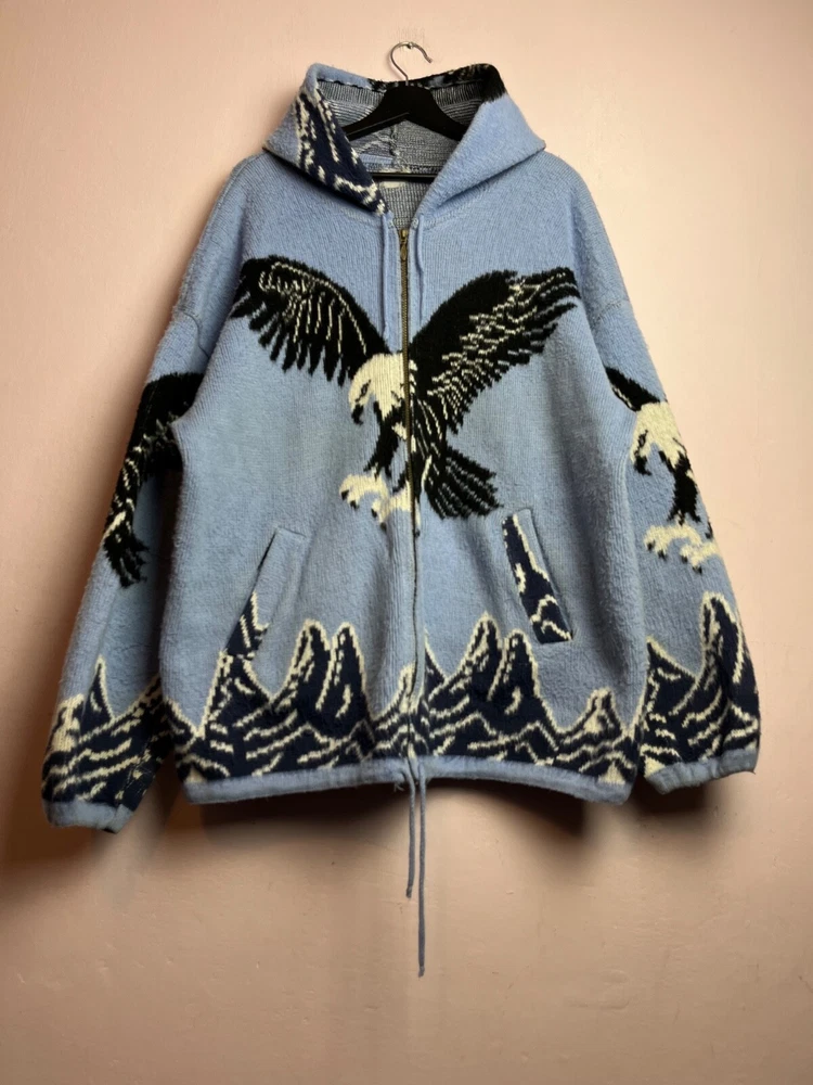 This vintage American Vintage Supreme Eagle Pile Wool Full Zip Fleece Jacket is a must-have for any fashion-forward man. The jacket is made of high-quality wool and features a full zip design, making it perfect for layering during the colder months. The blue color and bomber jacket style give it a designer, 90s vibe that is sure to turn heads. The jacket is XL in size and has a regular fit. The lining material is made of polyester, ensuring comfort and warmth for the wearer. With its unique features and fabric type, this jacket is perfect for anyone looking to make a statement with their clothing choices. Size XL Look at the photos! Fast Shipping! Chest 68 cm Length 72 cm Shoulders 75 cm