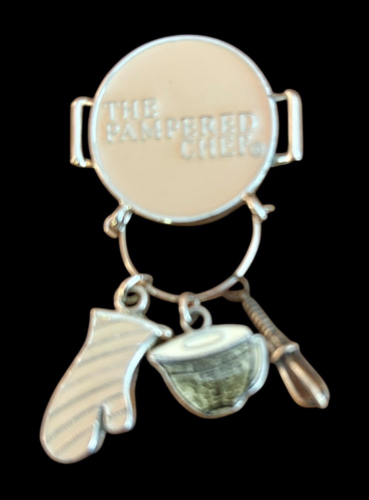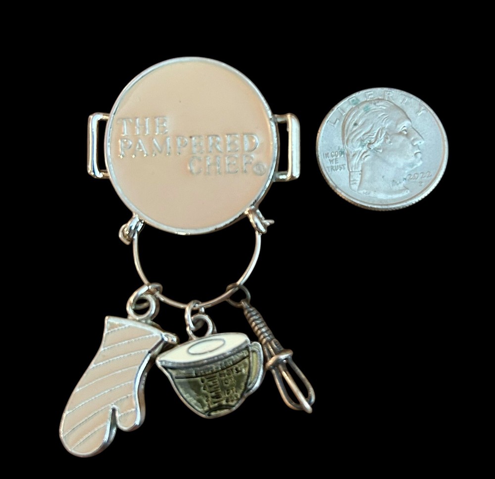 Delve into the world of vintage collectibles with this charming Pampered Chef Charm Pin Brooch. Adorned with three high-quality metal utensils, this piece is a delightful nod to culinary themes. The silver beige enamel finish complements its timeless design, making it a versatile accessory for any jewelry collection. Crafted with attention to detail, this brooch is a signed piece, confirming its authenticity. It's an elegant addition for those who appreciate enamel and metal jewelry with a touch of whimsy. Whether it's to accessorize an outfit or to add to a display of vintage treasures, this brooch is sure to impress.