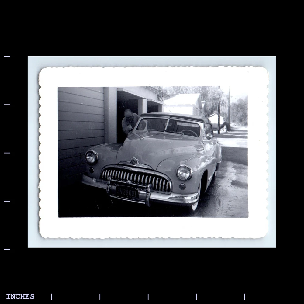 Vintage Photo MAN BY CLASSIC CAR BUICK CALIFORNIA PLATE 1952