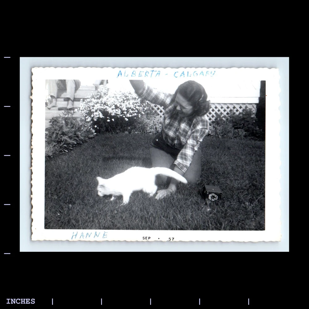 Vintage Photo WOMAN CAT KODAK BROWNIE CAMERA ALBERTA CALGARY CANADA 1957