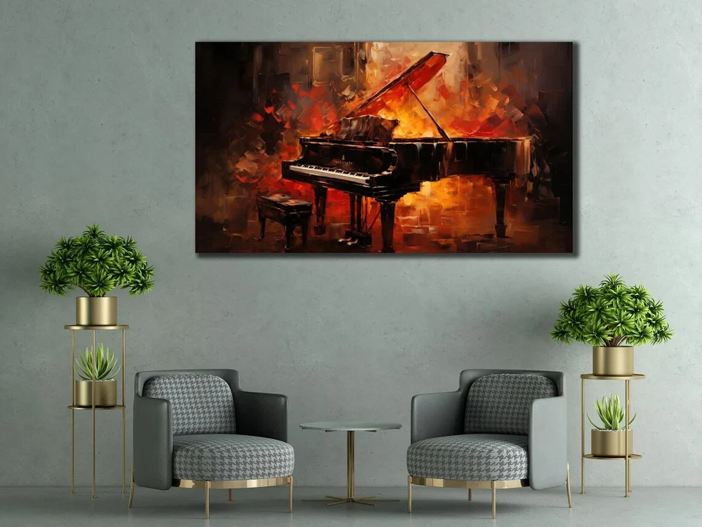 Vintage Piano Vibrant Abstract Paint Unframed Canvas Print Australian Wall Art