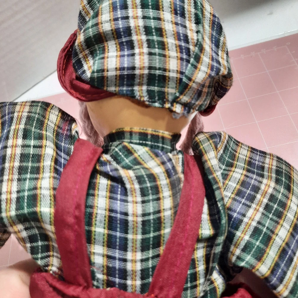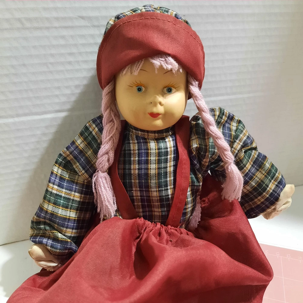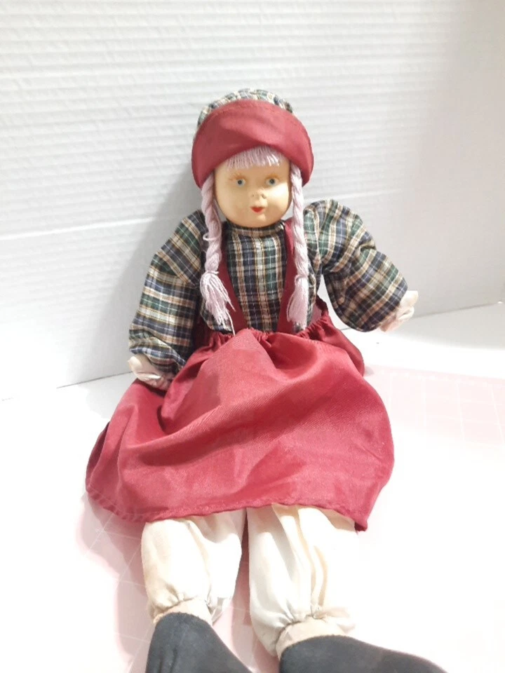 This beautiful vintage porcelain faced doll with purple yarn hair is a single unit antique collectible. The doll is 17 inches in size, with a girl doll gender and Caucasian ethnicity. Its blue eyes complement its light complexion and soft body features. The doll is sold without packaging, but its quality speaks for itself. This porcelain face doll is perfect for collectors or those who appreciate the beauty of antique dolls. Its straight hair and porcelain material make it a unique piece that is sure to impress. This doll is not just a collectible, but also a charming addition to any collection.