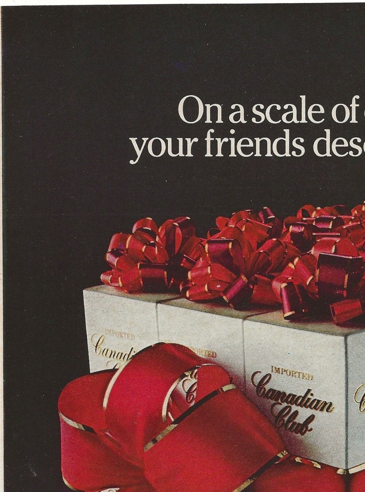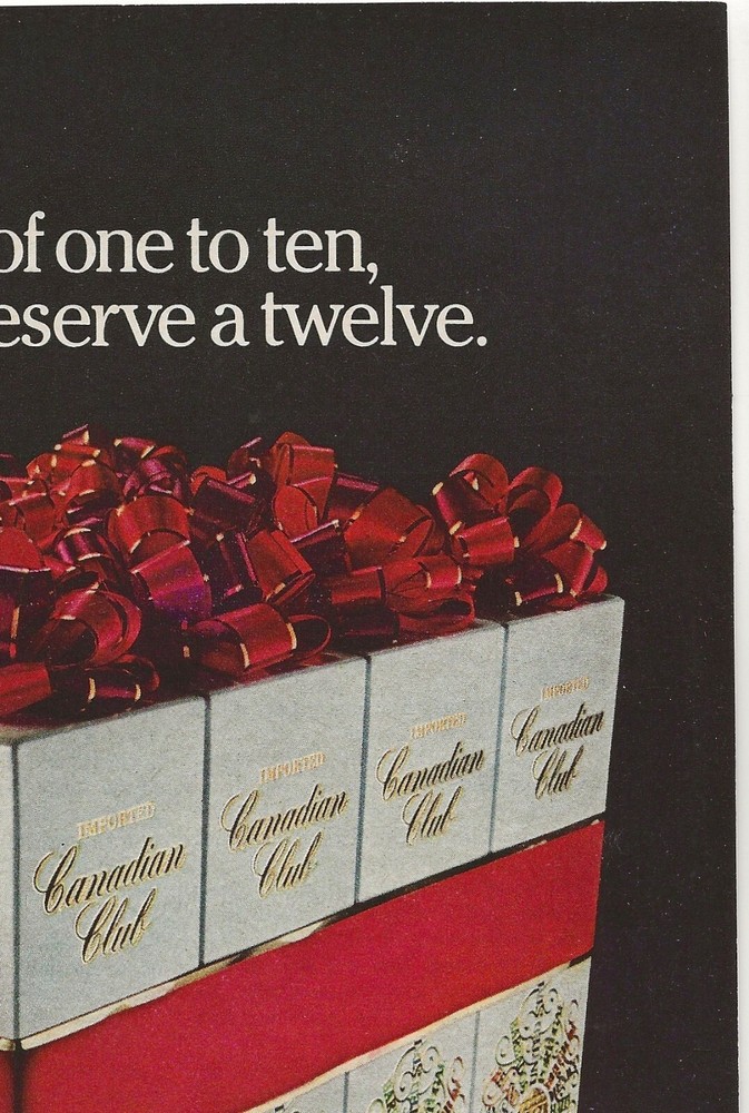 Vintage Print Ad Canadian Club Whisky - Gift Wrapped Bottles - Playboy December 1981 11"x8" No stock photos, what you see is what you get! This advertisement comes from an Adult Oriented magazine and the back may contain nudity or other mature content. Not a copy or reproduction. Suitable for framing. This is an advertisement for a product, NOT the product itself! Good vintage condition with some age wear. This vintage item may show signs of age and wear. Foxing fading or discoloration may be present. Please review scans. Shipping is a flat $5.99 for any number of print ads. Order one ad, pay $5.99 shipping. Order 10 ads, pay $5.99 shipping! Sent via USPS Ground Advantage. If you are purchasing several ads at once please use the "Add to Cart" button to ensure you are charged the correct shipping amount. Sell internationally only using eBay's Global Shipping Program. Item will be shipped same or next business day after payment received. Contact me with any questions and Please check out my other items. Thanks for looking!