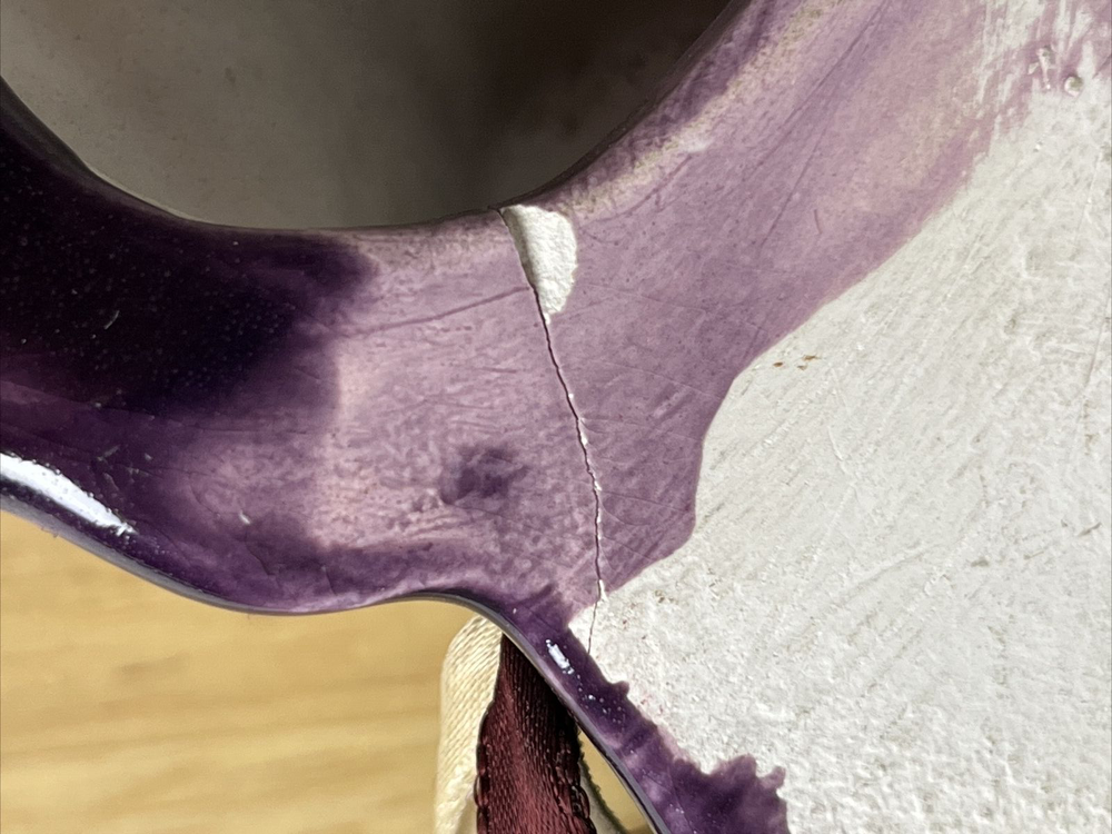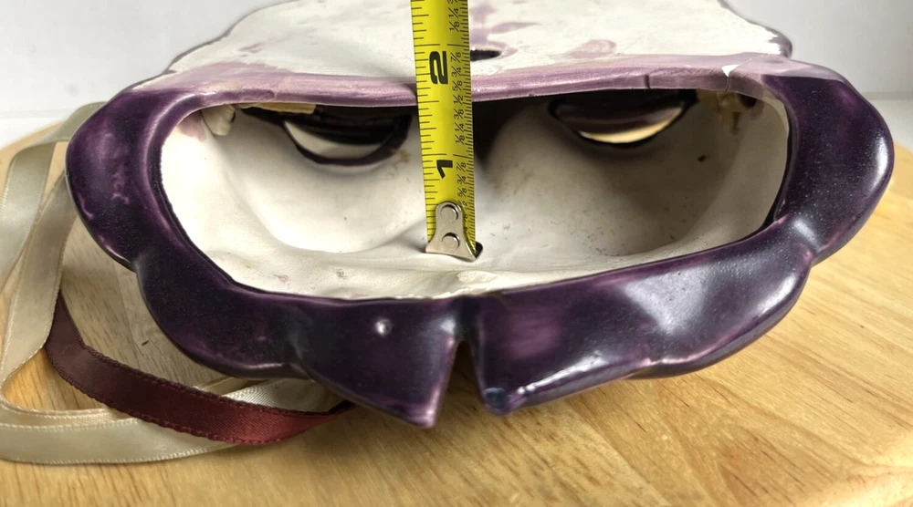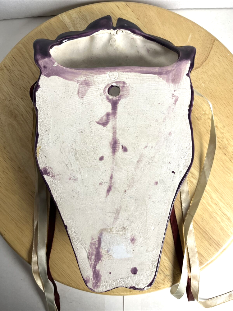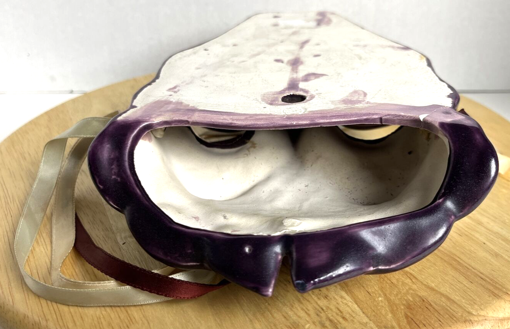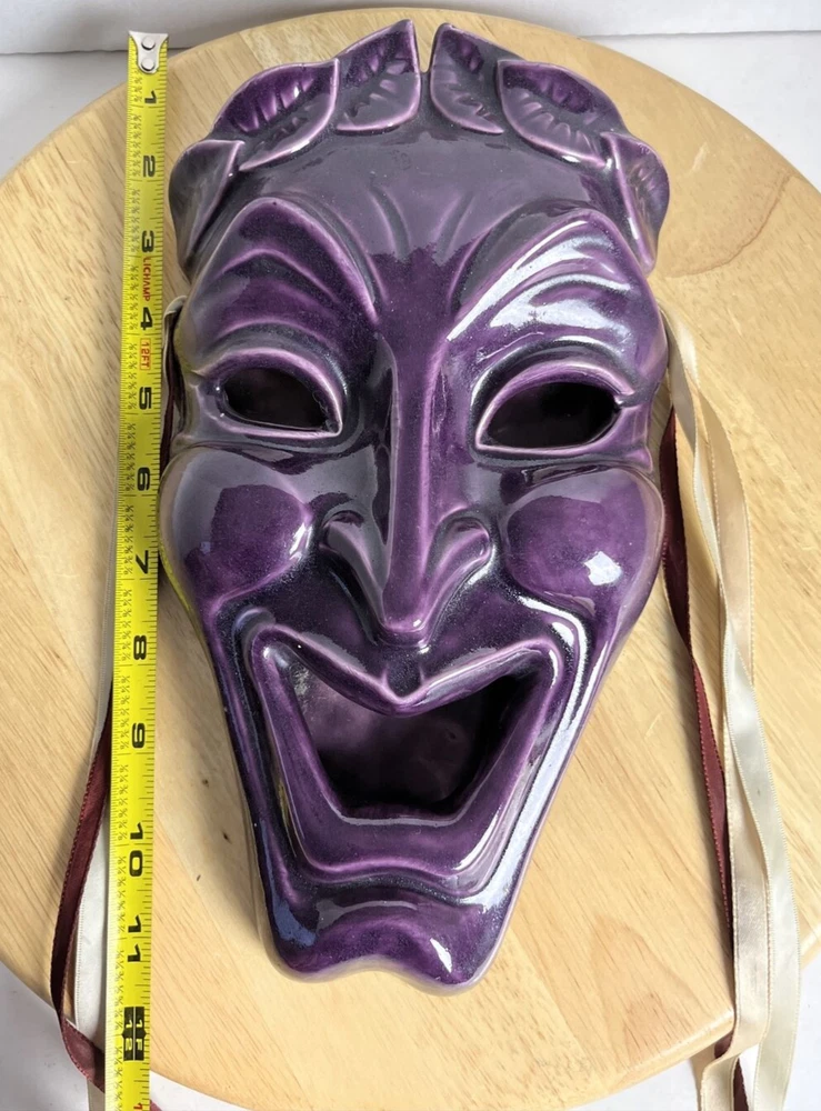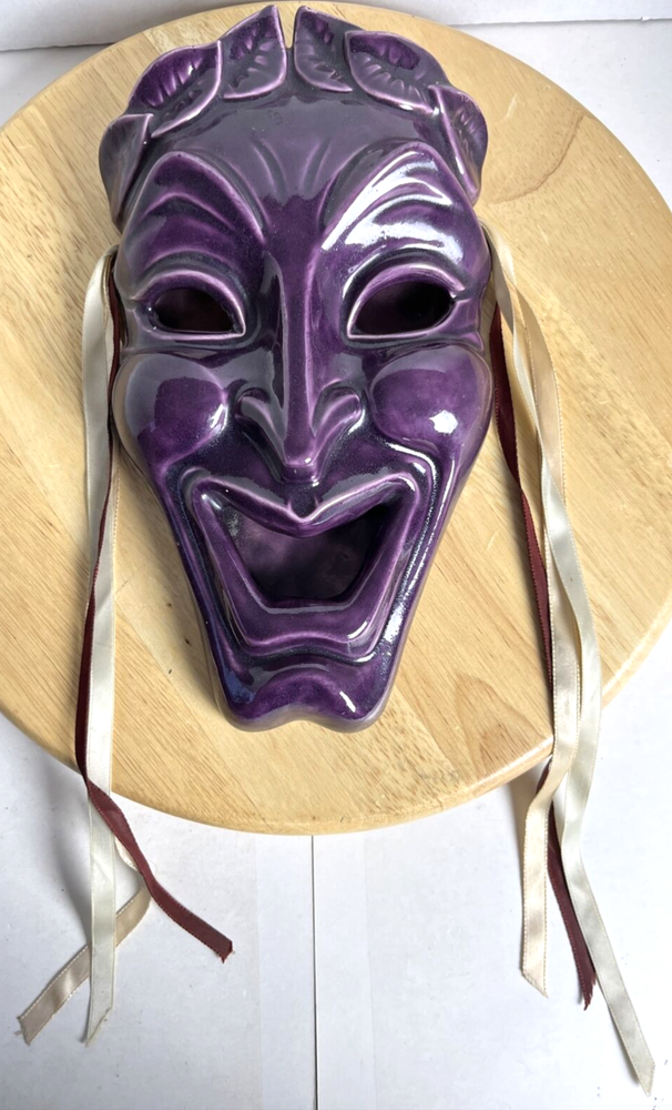 Vintage Mask Purple Ceramic Greek Laurel Wreath Theater Wall Decor 11” tall There is a small crack on the back, see photos I added some superglue there to strengthen it