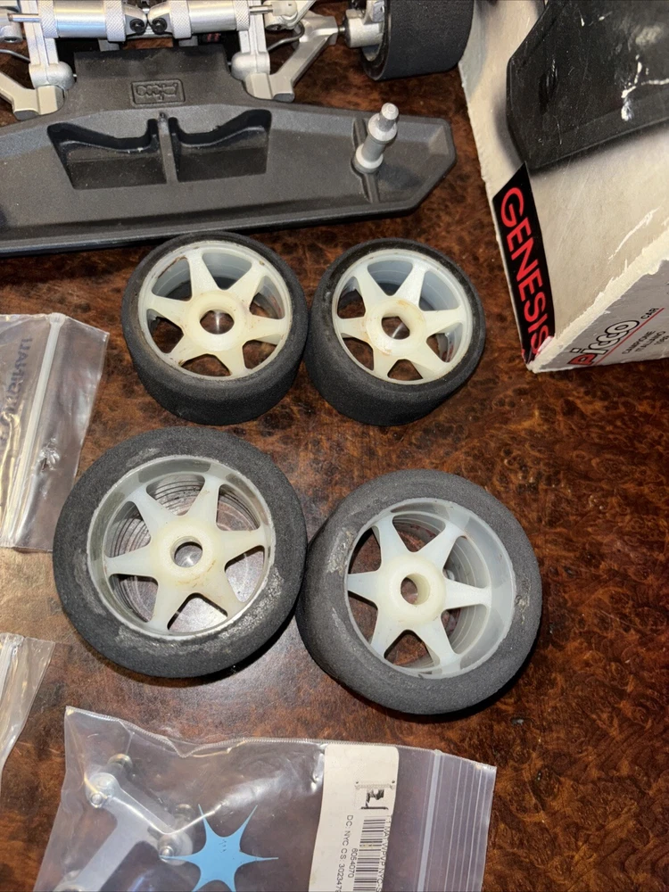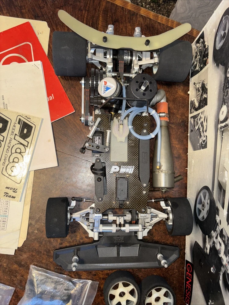 Ok, this is probably one of the nicest Picco Genesis out there!!! This car is like new, and has almost every Paris Racing option part!!! I promise you will not find a nicer example. So here is what it has… Picco p-5 engine with great compression Extra piston/sleeve/conrod 3 speed transmission, with diff, and extra solid axle Savox servos(new), Sanyo 600 mah battery(new) Kit hardware, bearings, and belts Picco header, Ron Paris pipe Fresh tires/rims, also includes factory SG wheels Paris yellow clutch shoes Paris carbon fiber chassis Carbon fiber radio tray Box, all paperwork, and decals Paris H.D. Front sway bar, custom spring perches Paris magnesium front body mounts Paris front and rear Ergal lower control arms Paris aluminum upper arm mounts Paris Delrin pivot balls Paris Ergal steering arms Paris Ergal rear bulkheads Paris Ergal rear hubs BMT one piece center shaft Paris hard coated pulleys on 3 speed shaft (2) Paris light weight front and rear dog bones Paris designed rear body stiffener Extra parts include rear solid axle, chassis screws, suspension bushings, wing mount, piston, sleeve, and conrod, all of these parts are nip. All original paperwork decals and box The RC500 body that is included is a few mm to short for this chassis The only Paris parts that this does not have is the front and middle belt tensioners I’m sure I have missed something, if you have any questions please feel free to ask, if you need more pix, let me know!!! Thank you for looking, and have a great day!!! I will be listing a bunch more Genesis parts, tires and wheels, if you need something in particular please ask and I’ll see if I have it!!! P.S. I’m getting tired of people having buyers remorse, only on my high priced items for some reason, if you buy this car, or bid on it, I will NOT cancel either, if you have legitimate reason, I will gladly work with you! I have dropped the price as low as it’s going to go….