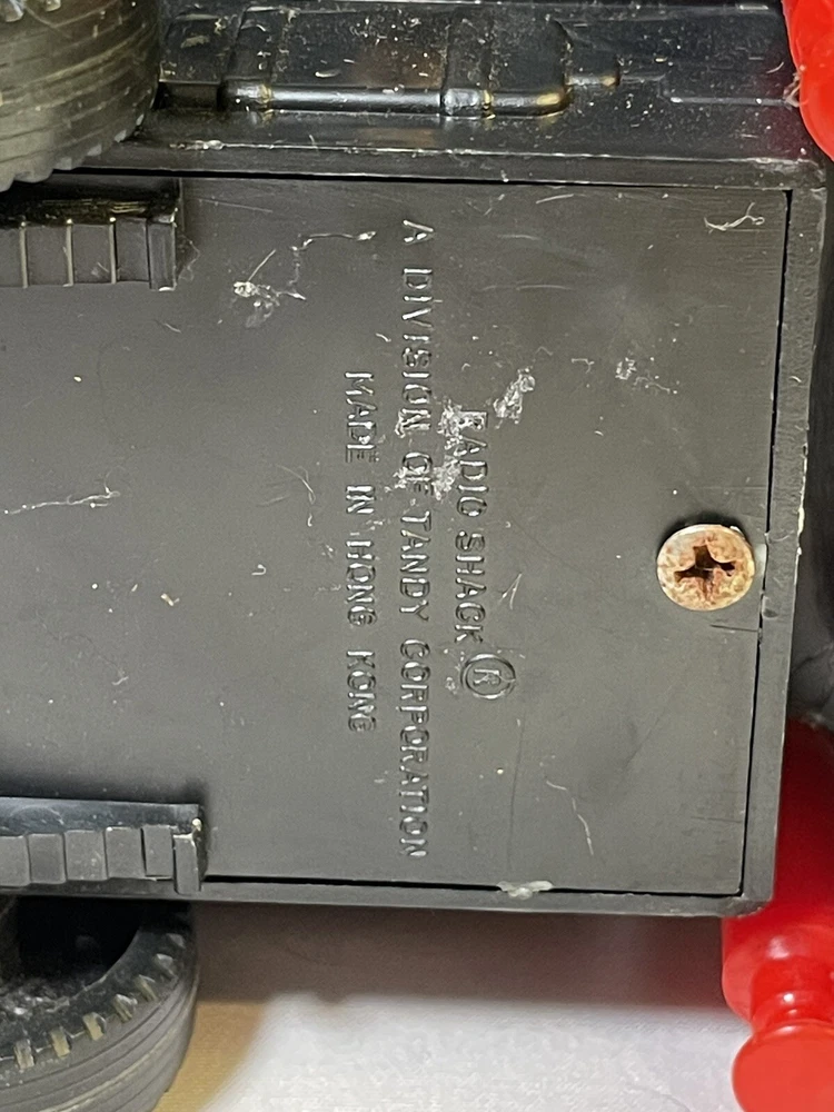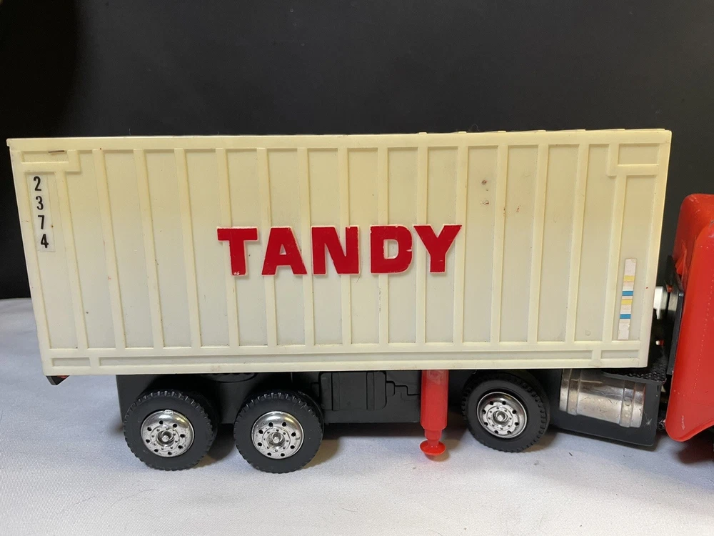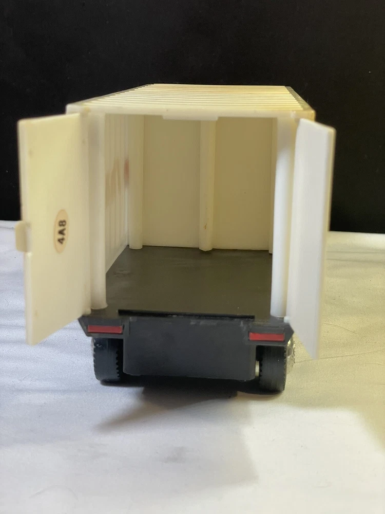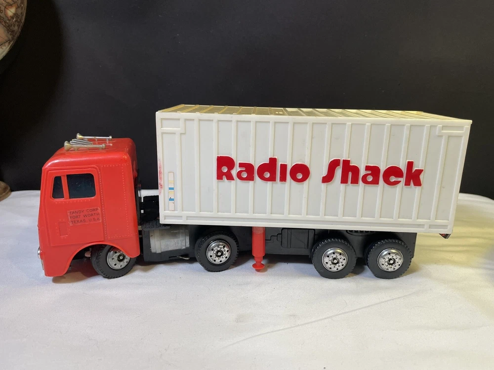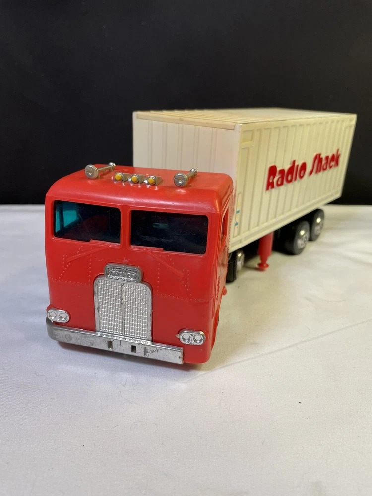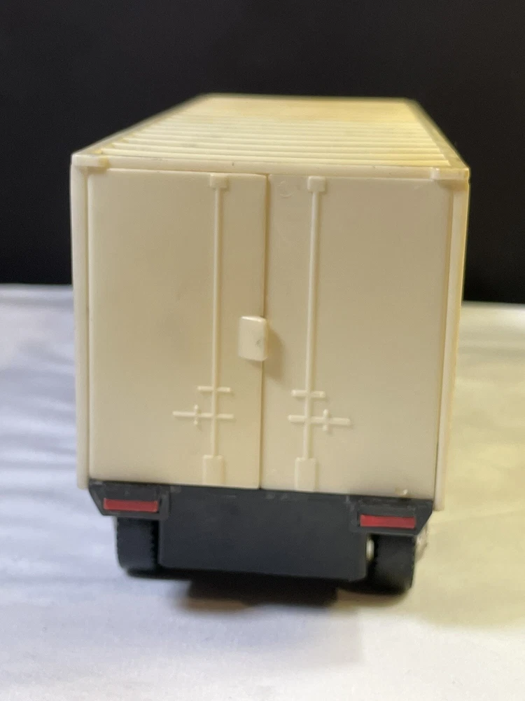 This powers on when batteries are inserted- the powered wheel needs lubrication/attention, no track to test it on and has minimal movement. Track is not included, see picture details for condition info. All aspects of the truck are present.