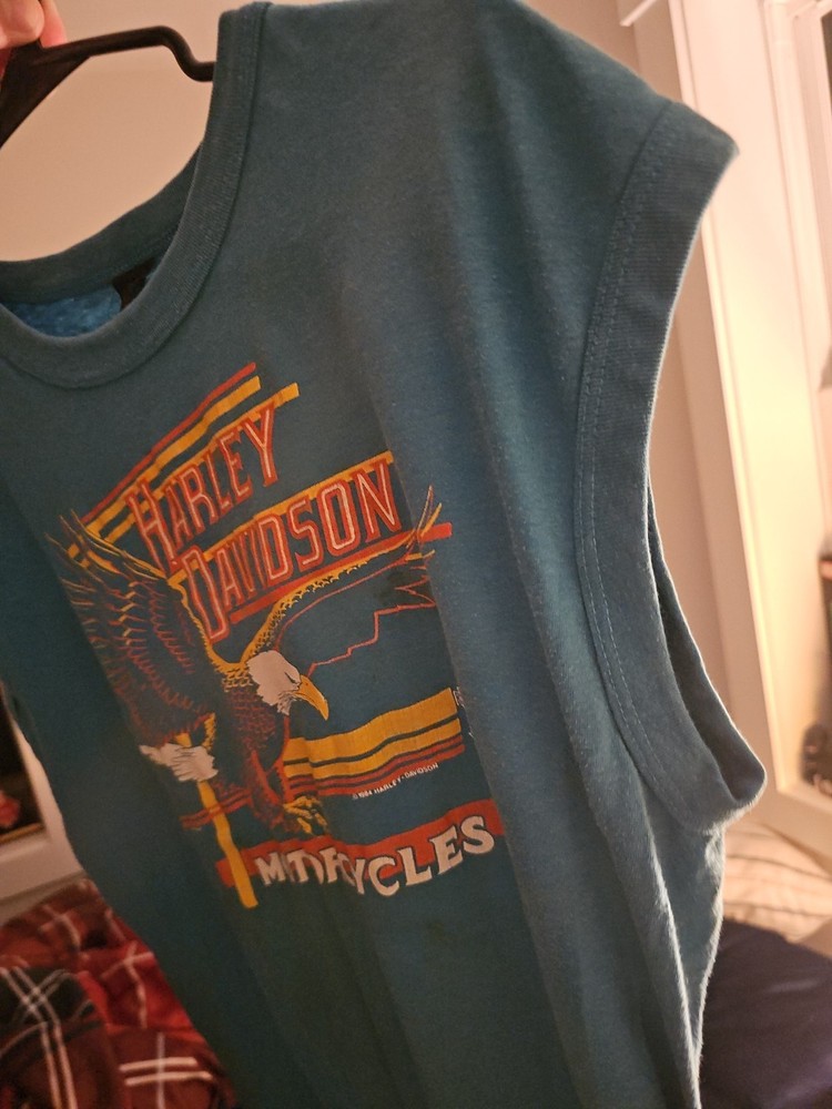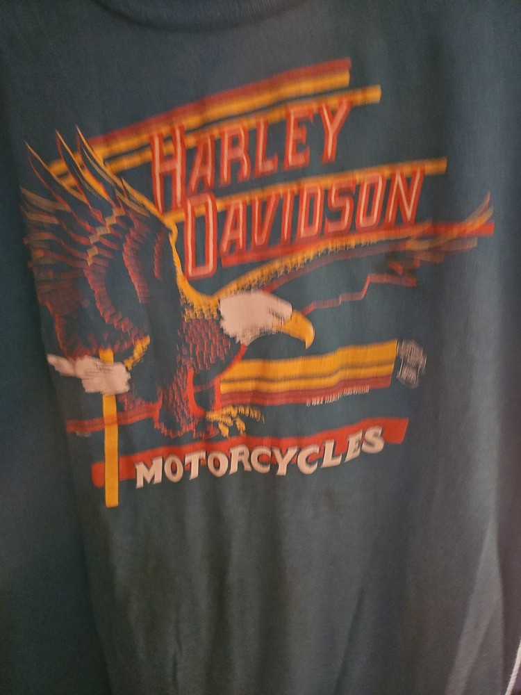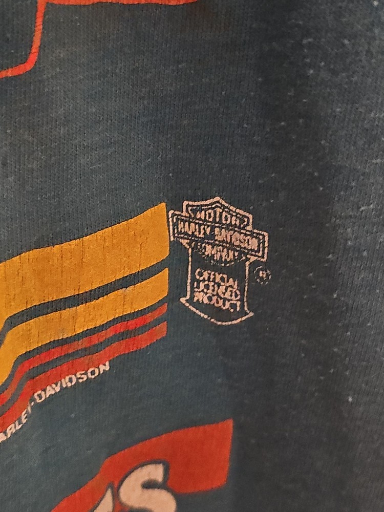 This vintage rare blue 1984 Harley Davidson tee shirt is a highly sought-after piece for any Harley-Davidson enthusiast. Made of cotton with a crew neckline and short sleeves, this regular fit shirt is machine washable for easy care. The double-sided design features the iconic Harley-Davidson brand, making it a standout addition to any wardrobe. Perfect for summer, fall, and spring, this shirt offers a nostalgic touch for those who appreciate classic Harley-Davidson style.