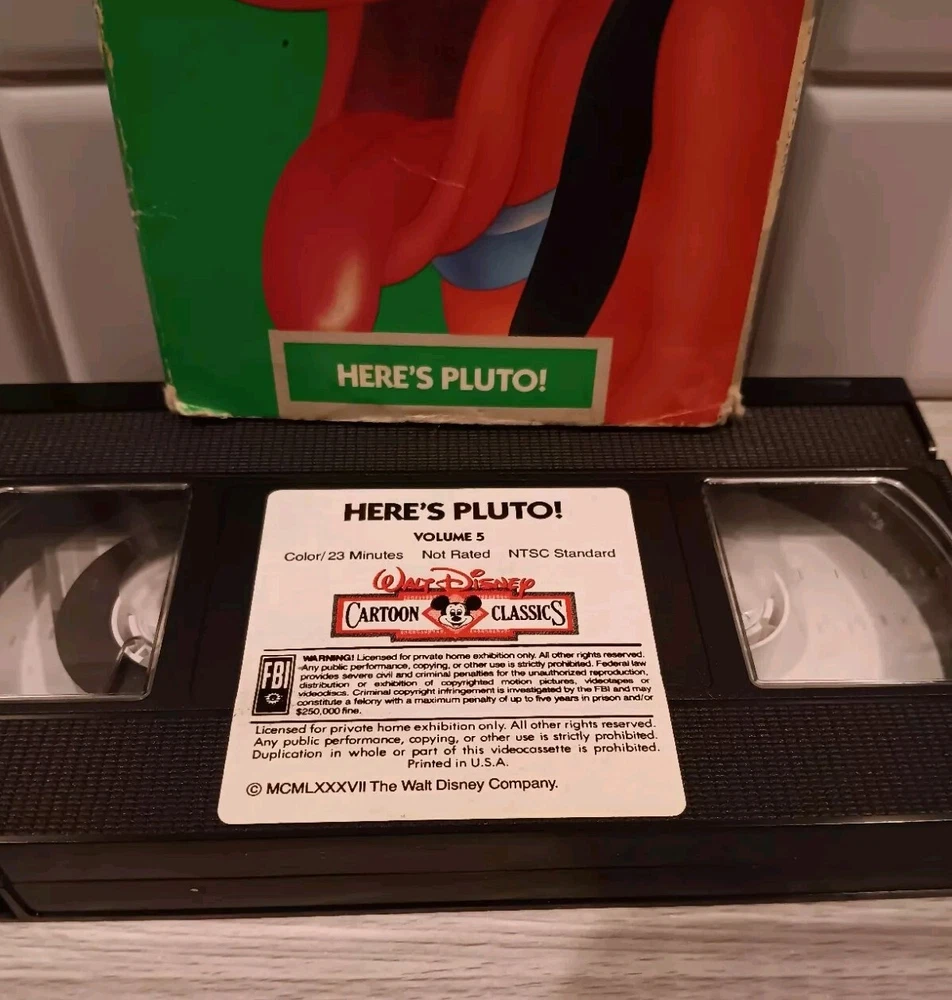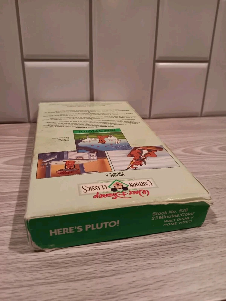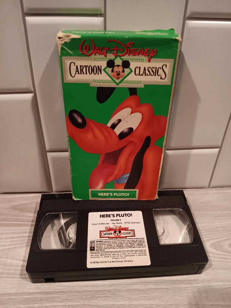 This rare vintage Walt Disney VHS tape features the beloved character Pluto in a classic cartoon adventure. The tape is a must-have for any Disney collector or fan of classical animation. The VHS has been well-maintained and is in excellent shape, making it a great addition to your collection. The tape is in English and has not been rented in the past. The genre is music and concerts, with a sub-genre of classical. The movie/TV title is Cartoon Classics: Here's Pluto!, produced by Disney. This VHS tape is a great find for anyone looking to add some classic Disney magic to their collection.