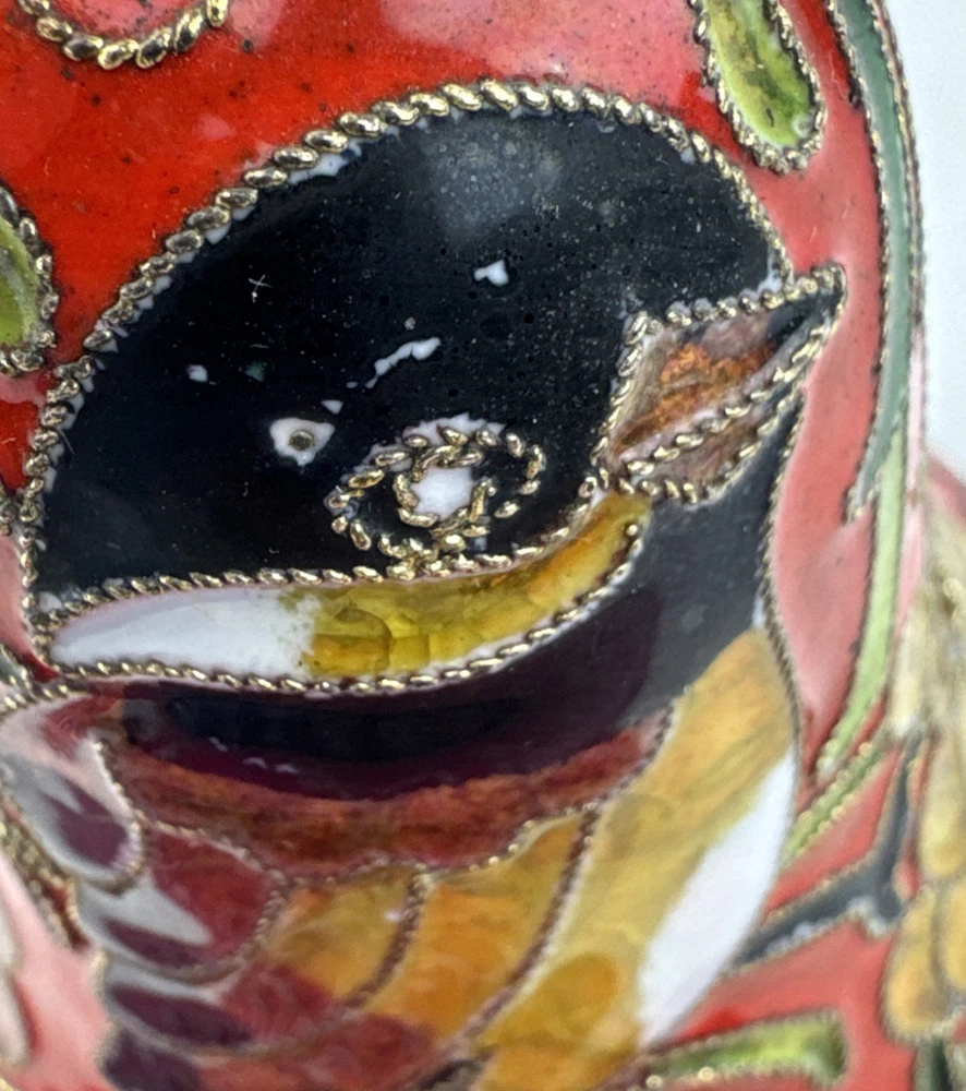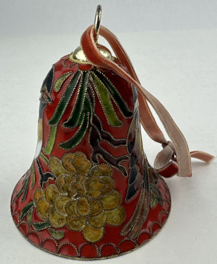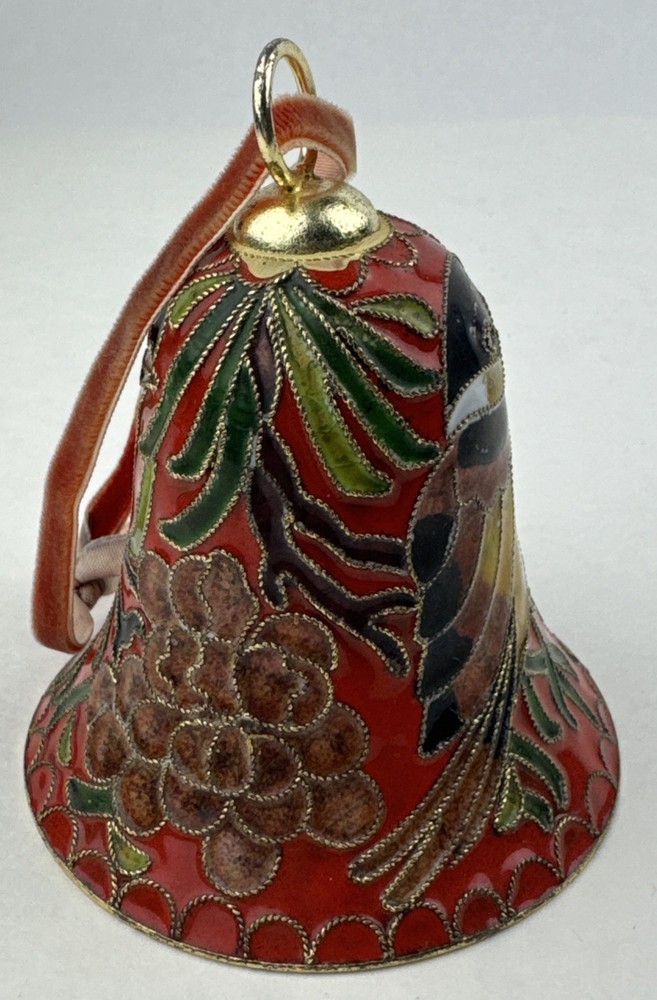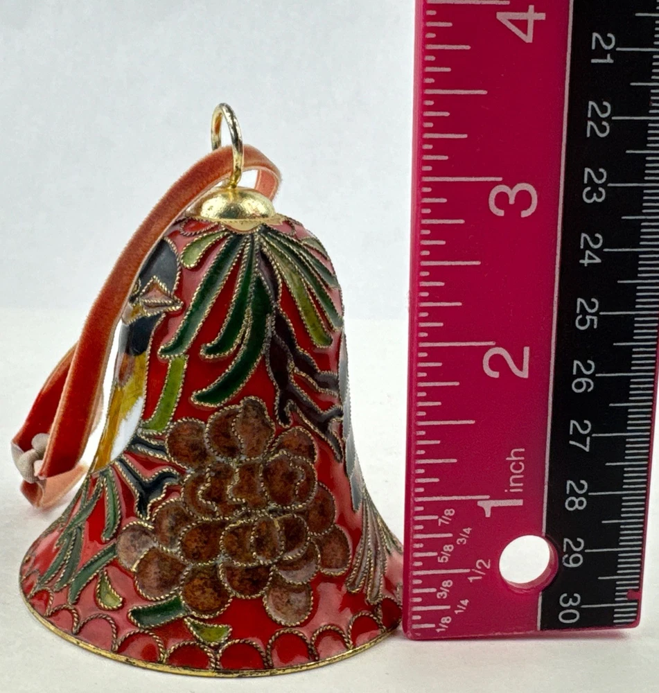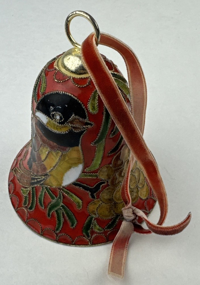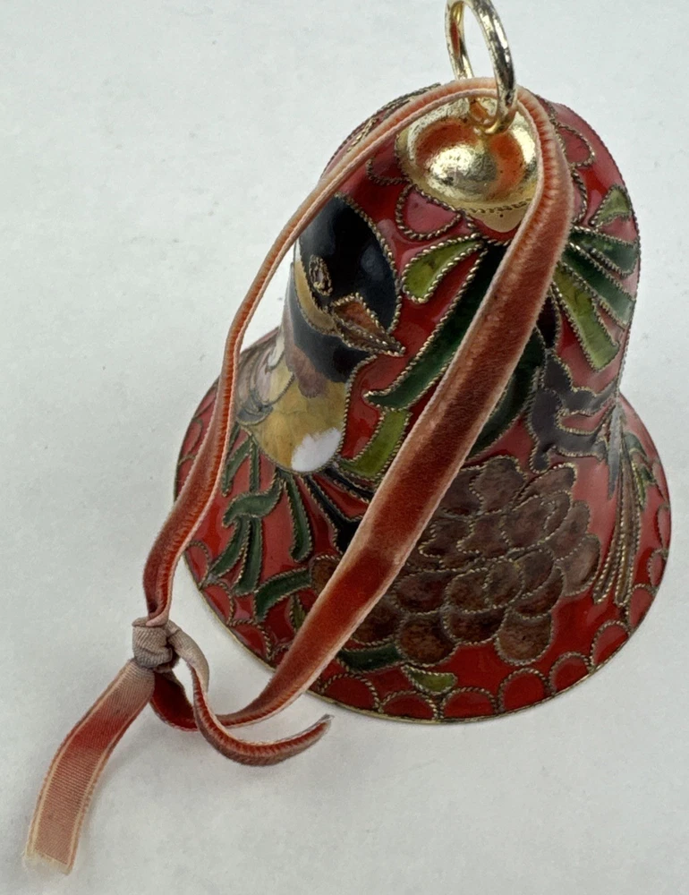 HomeVintage Red Enameled Cloisonne Bird Bell Floral Ornament
