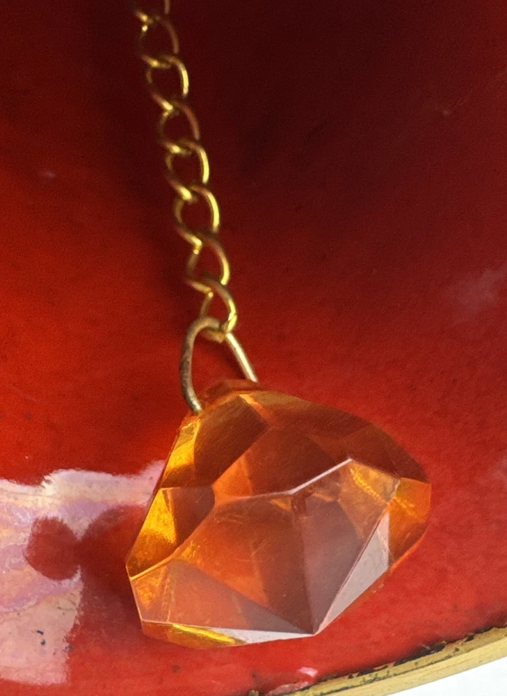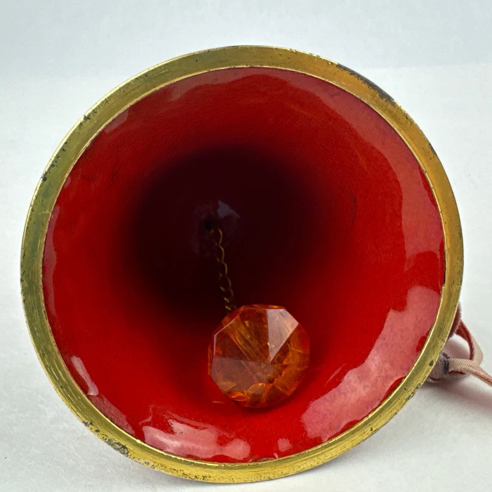 Vintage Red Enameled Cloisonne Bird Bell Floral Ornament