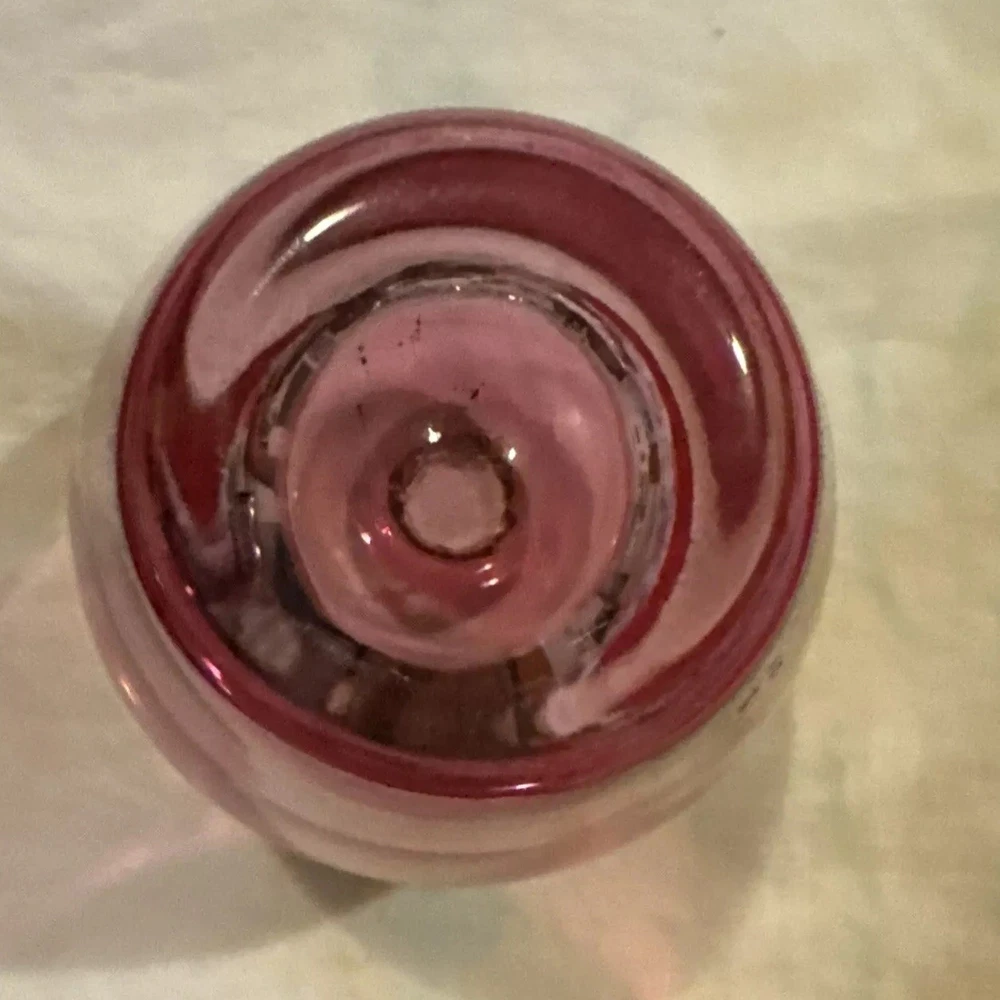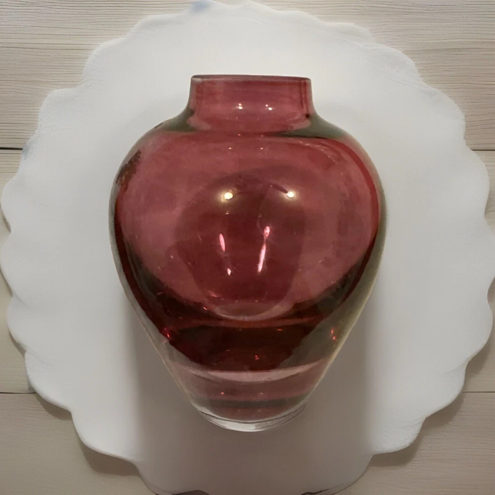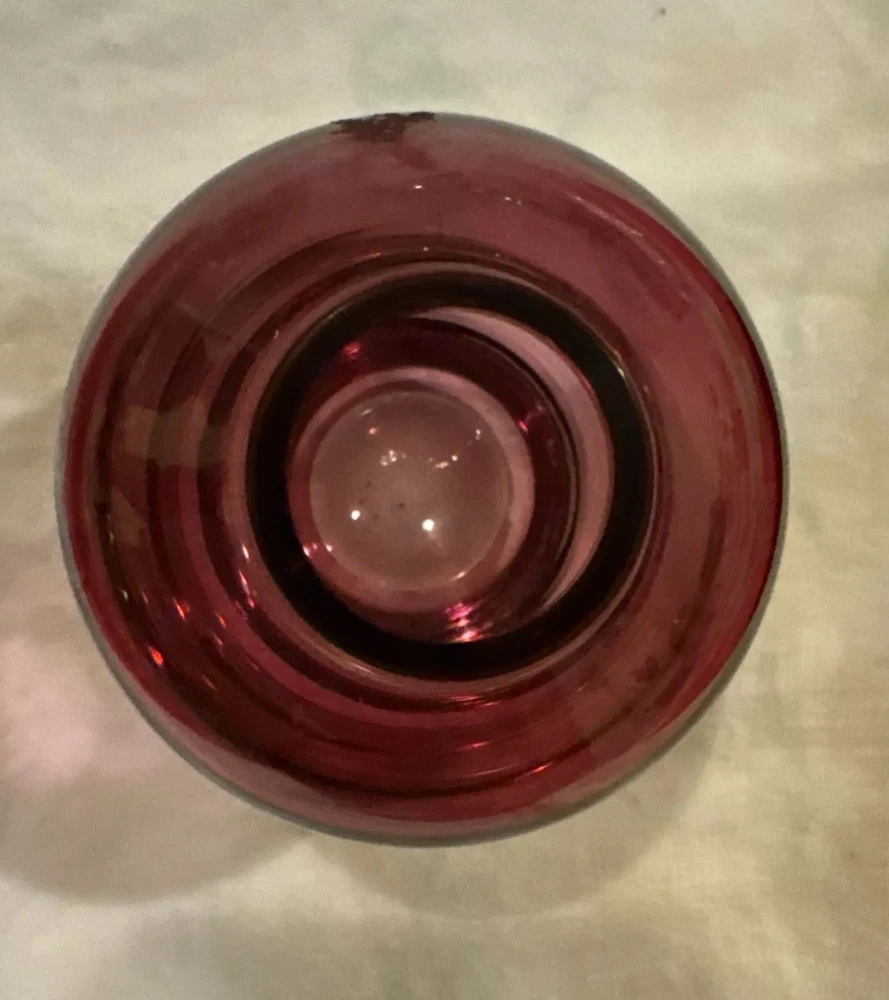 Vintage Red Glass Bud Vase. This vase is made of glass and features a vibrant red color. It is designed in a bud shape, perfect for displaying a single flower or small bouquet. A beautiful collectible item that adds a decorative touch to any space.