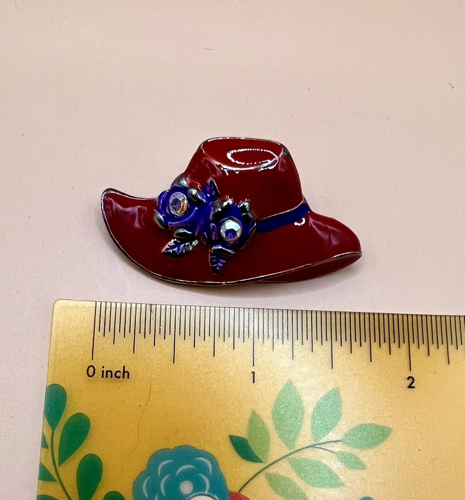 Vintage Red Hat Society Floral Hat Pin with Safety Back