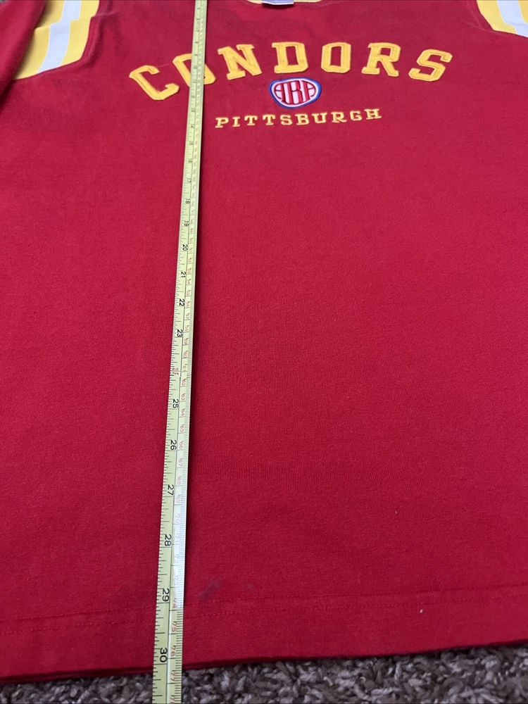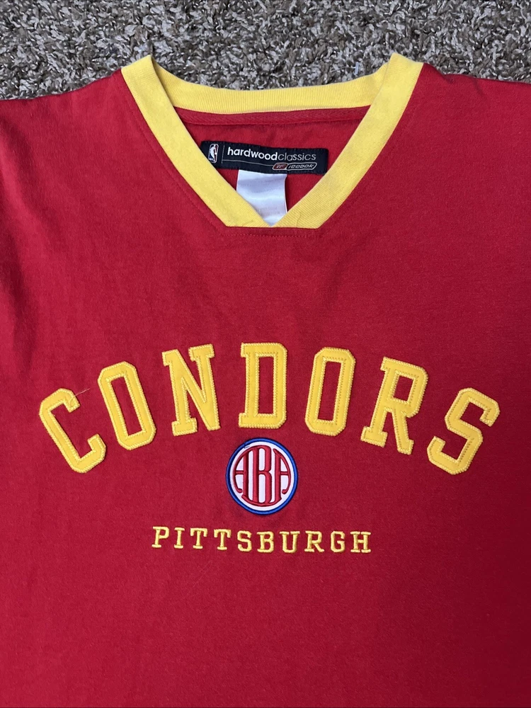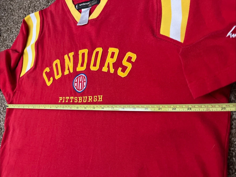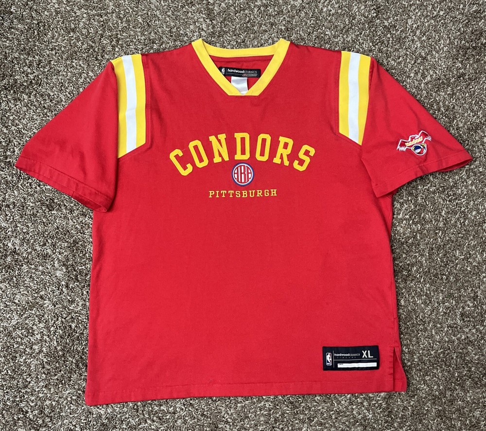 Vintage Reebok Hardwood Classics Pittsburgh Condors Jersey Shirt Size: XL Measurements: See photos! Condition: great preowned and gently used condition with zero holes or major flaws. Light blemish on front near bottom seam - (pictured) see photos and feel free to direct message questions. ** over 1500 positive feedback received***