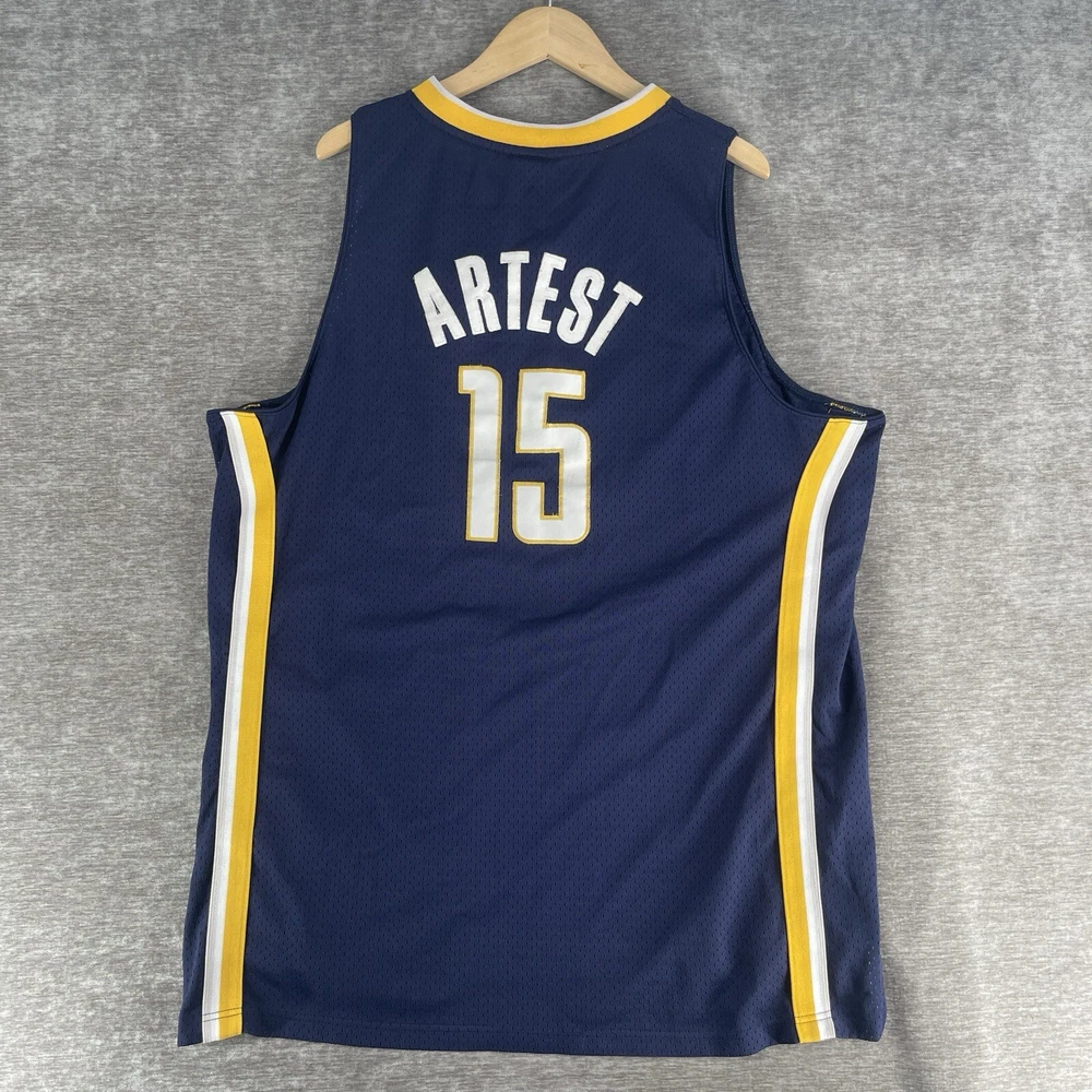 Sport: Basketball-NBA Color: Blue Brand: Reebok Player: Ron Artest Product: Jersey League: National Basketball Association (NBA) Featured Refinements: Swingman Jersey Size: XL Team: Indiana Pacers Gender: Men Pre & Post Season: Regular Season