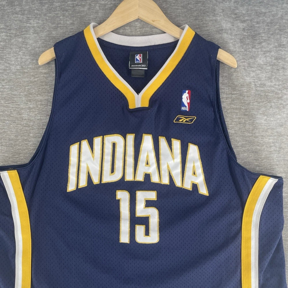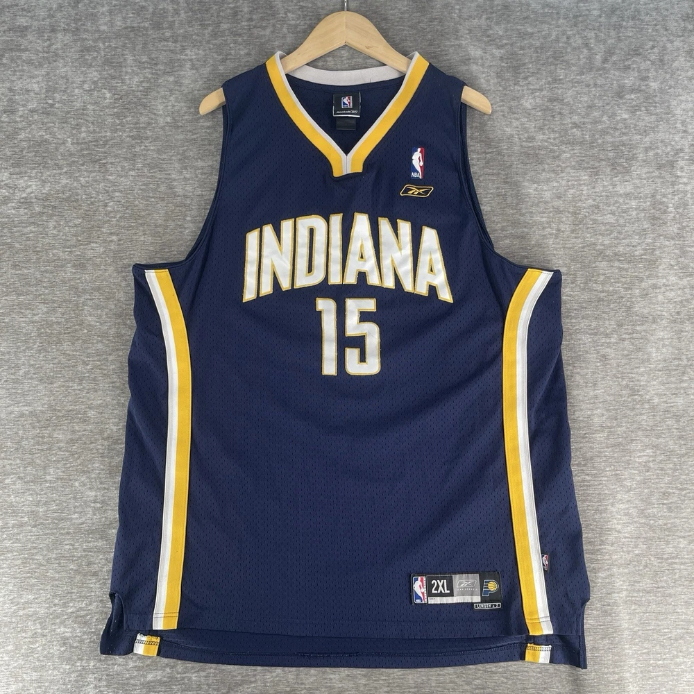 Embrace the nostalgia of the hardwood floors with this vintage Reebok Indiana Pacers #15 Ron Artest Swingman Blue Jersey. A true collector's piece for any fan of the game, this jersey celebrates the legacy of the NBA's talented players. Crafted with the iconic colors and design synonymous with the Indiana Pacers, it's a must-have for enthusiasts of the team and the sport. In a men's size XL, it's ideal for displaying your support during the regular season or adding to your collection of basketball memorabilia. The jersey's featured refinements include the authentic Swingman design, ensuring you get as close to the court experience as possible, without the need for a court ticket. Whether you're cheering from the stands or reminiscing about the good old days of basketball, this jersey brings a piece of the action into your home.