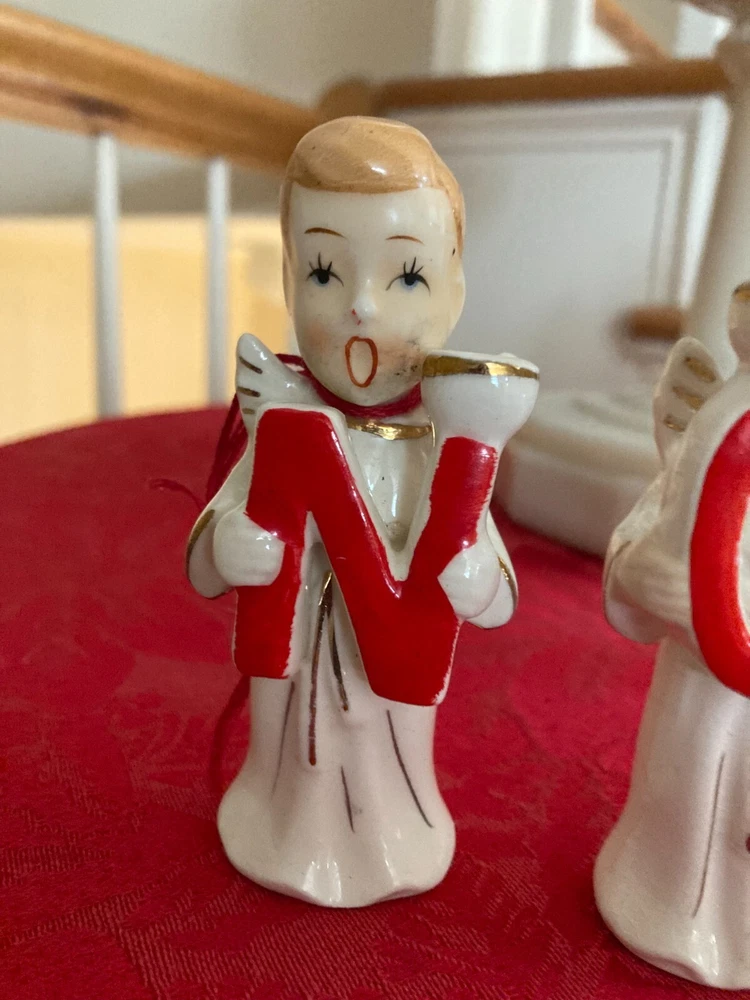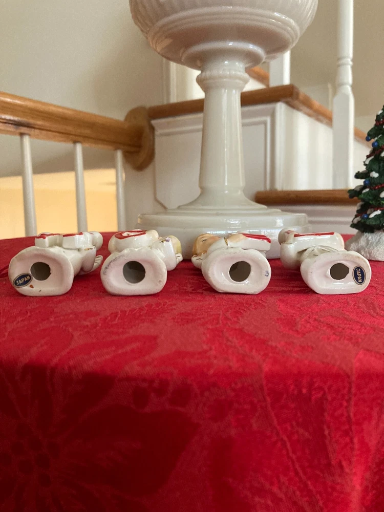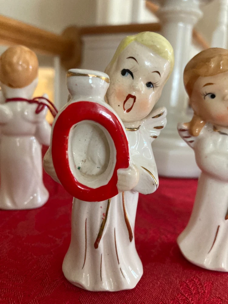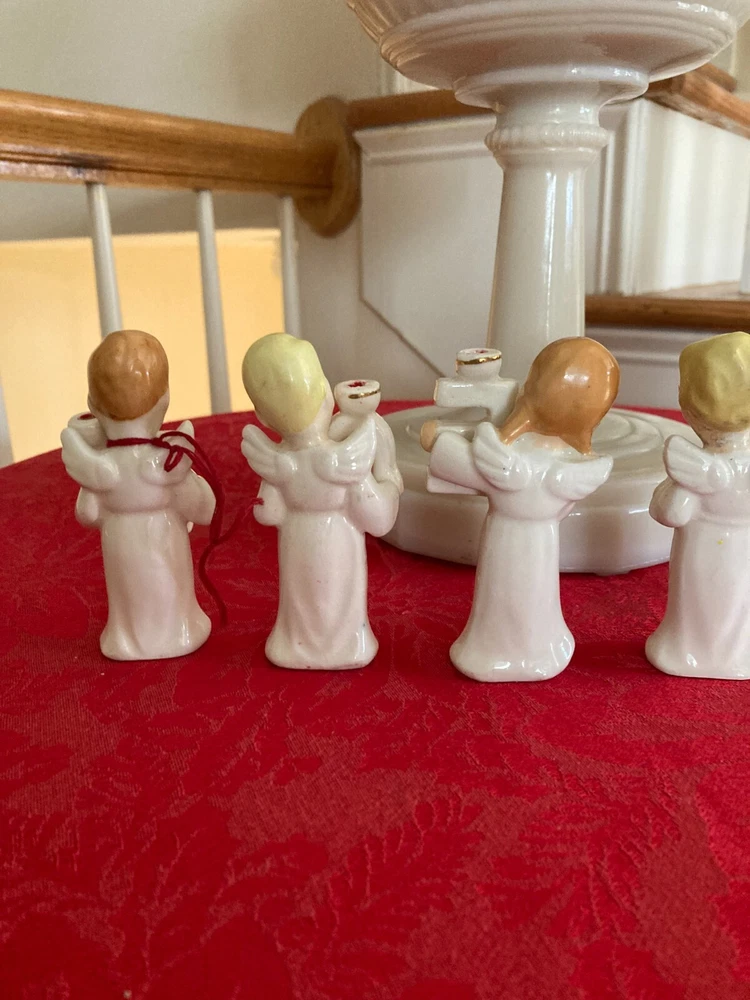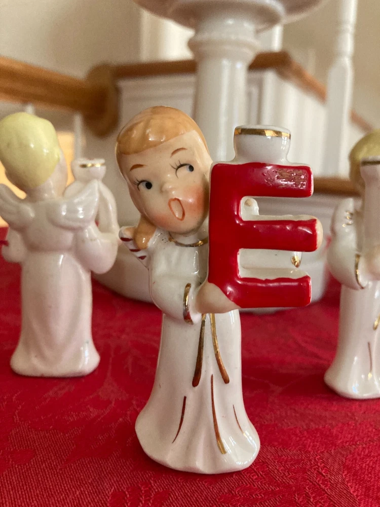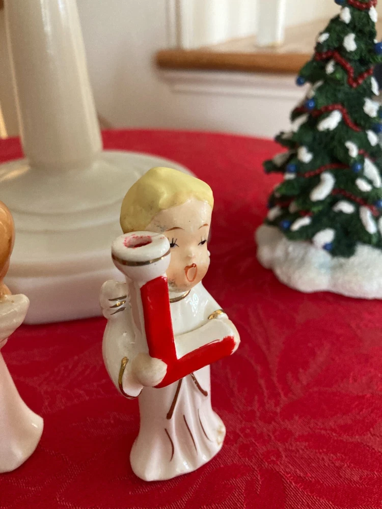 Elevate your festive decor with the charming Vintage Relco Japan Ceramic 4 Piece Set, featuring the delightful NOEL Angel Mini Candle Holders. Each piece, small in size yet rich in detail, showcases an angelic motif that captures the spirit of Christmas. Crafted from high-quality ceramic, these candle holders are adorned with a multicolored palette that brings a touch of vintage elegance to your seasonal settings. Ideal for mini candles, this set of four allows for a harmonious display throughout your holiday space. Embodying the style of the 1950s and manufactured in Japan during that era, these candle holders reflect a bygone time's craftsmanship. Perfect for those who appreciate the nostalgic appeal of Christmas past.
