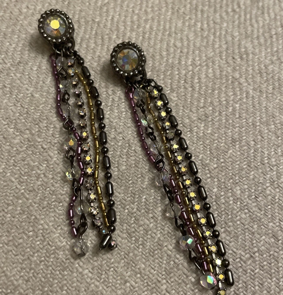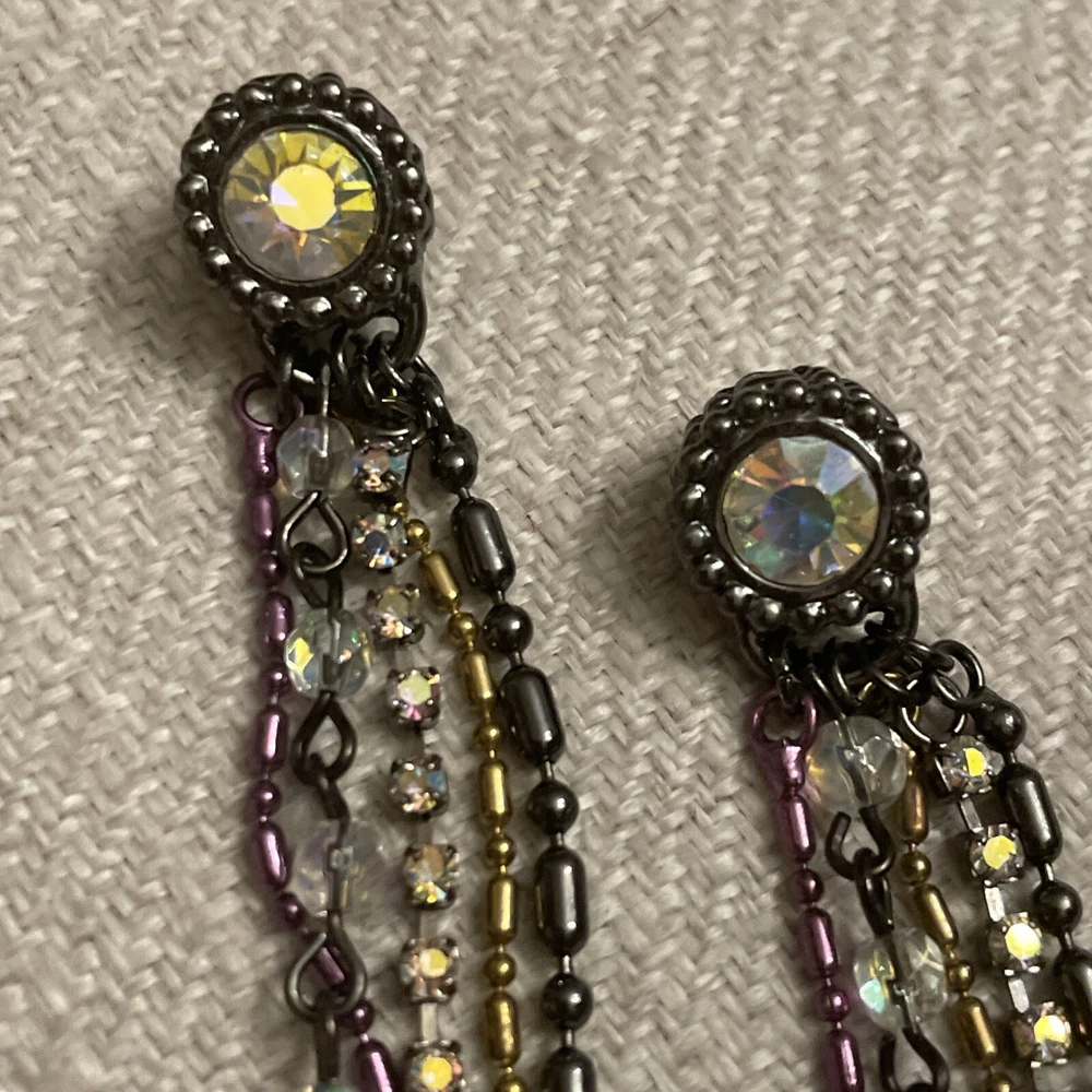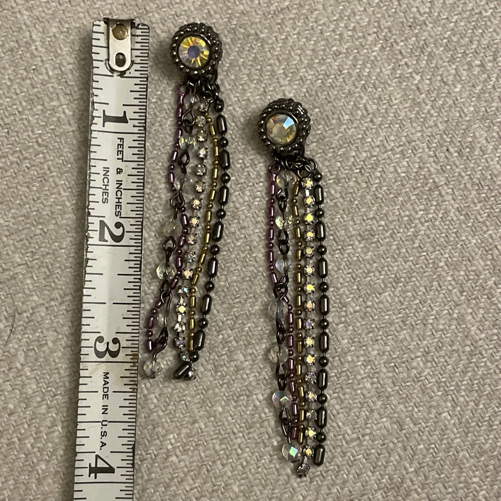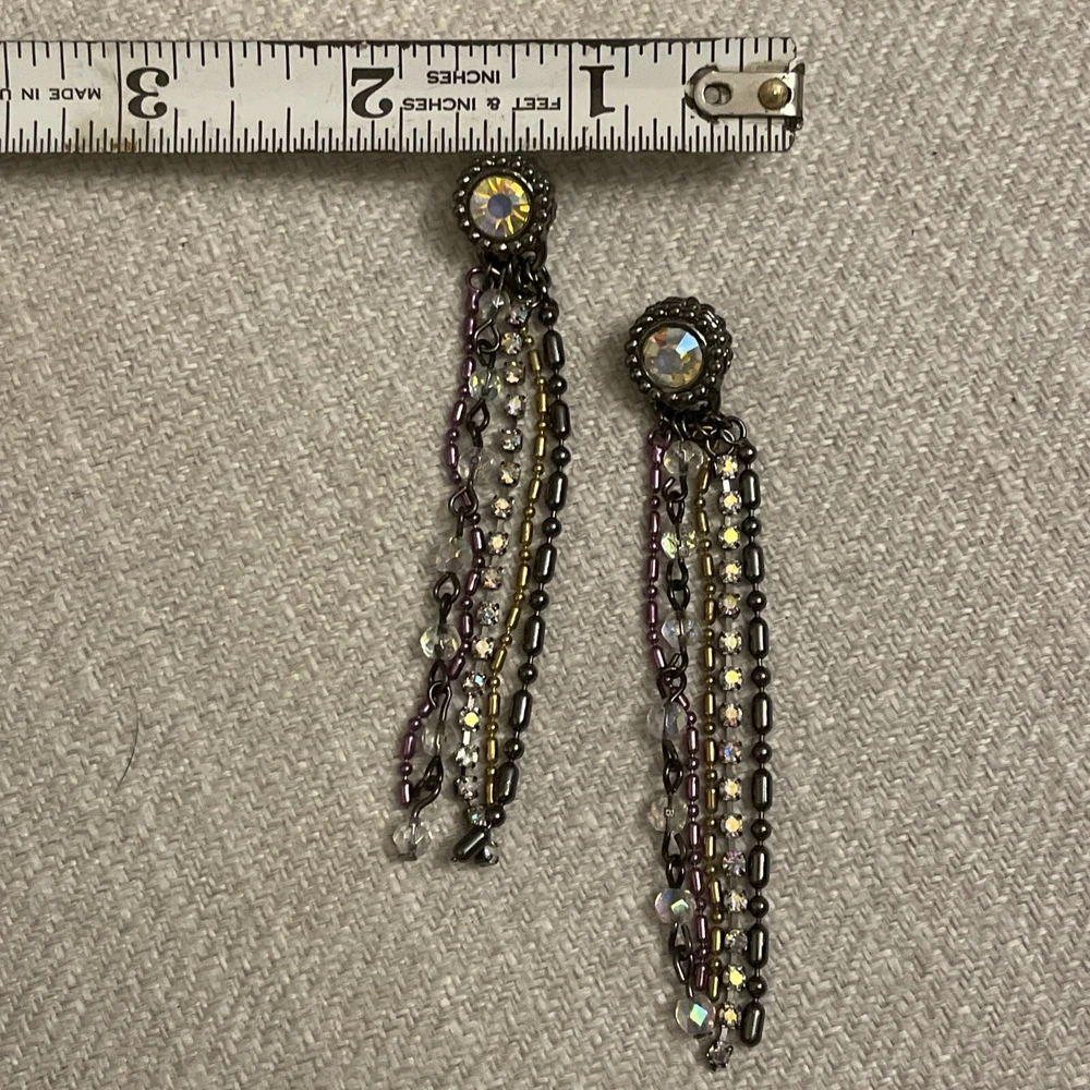 Vintage Retro Aurora Borealis Crystal Cup Chain Fringe Drop Earrings Long. Condition is Pre-owned. Shipped with USPS Ground Advantage.