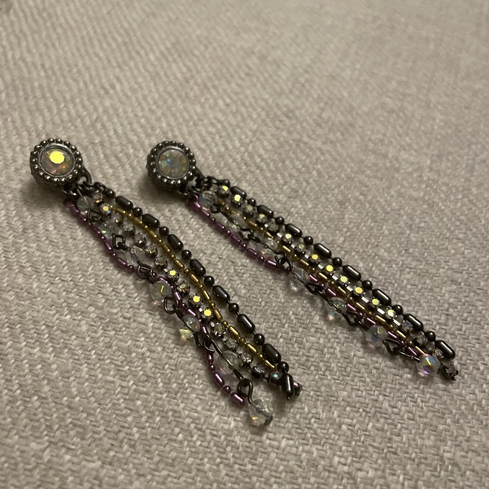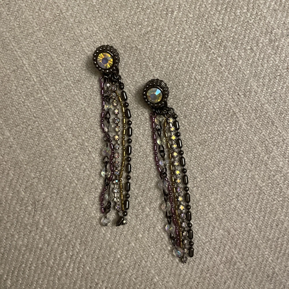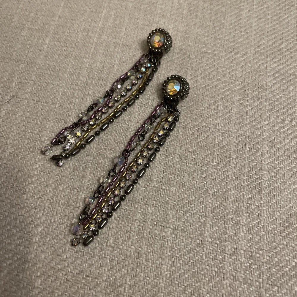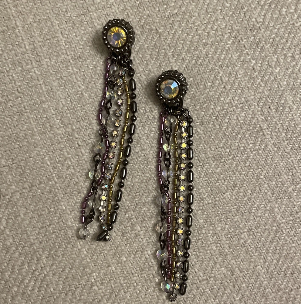 Vintage Retro Aurora Borealis Crystal Cup Chain Fringe Drop Earrings Long. Condition is Pre-owned. Shipped with USPS Ground Advantage.