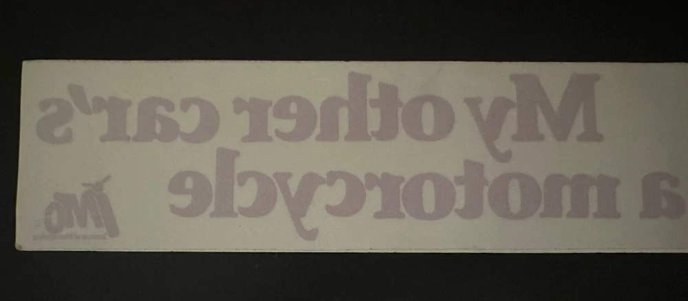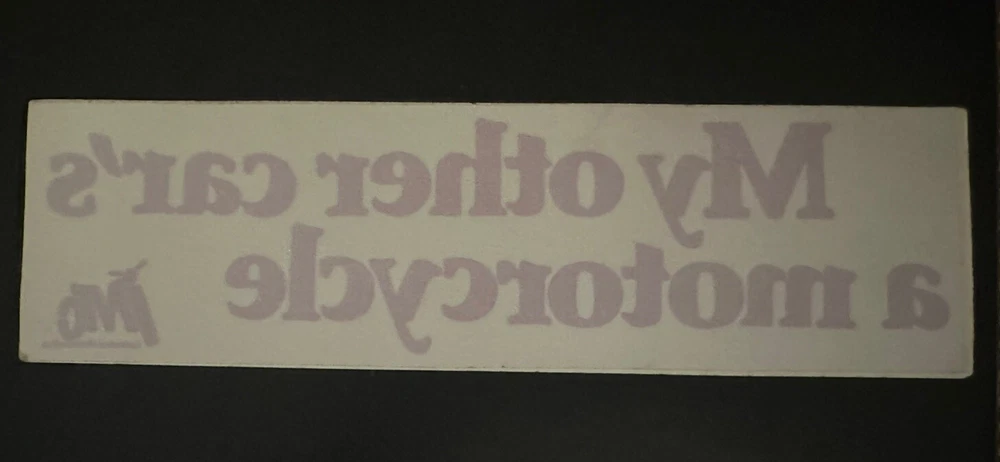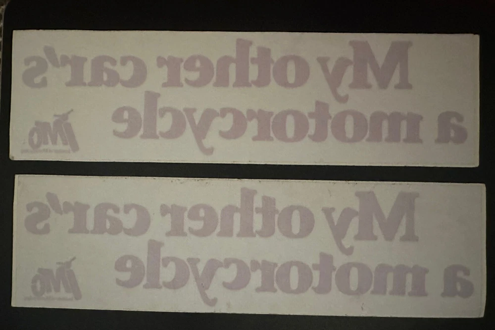 Vintage IMO 'My other car's a motorcycle' sticker decal bundle (x2) Two Institute of motorcycling stickers Approx 230mm x 65mm New old stock - please see photos as they form part of the description