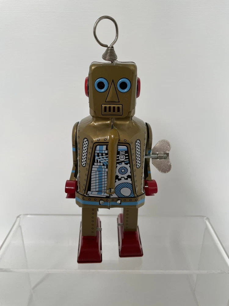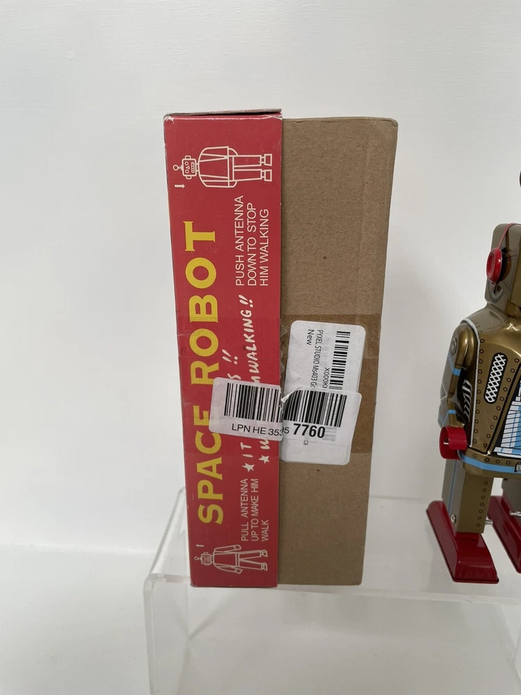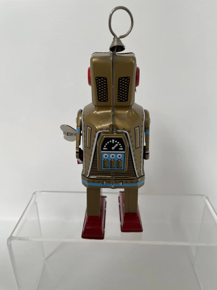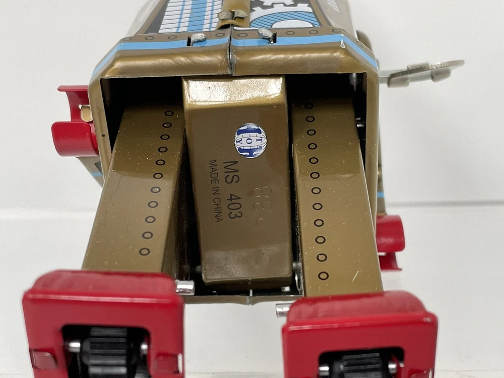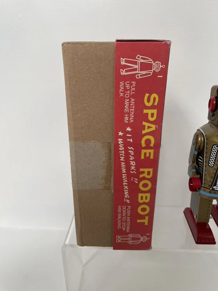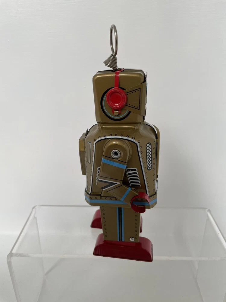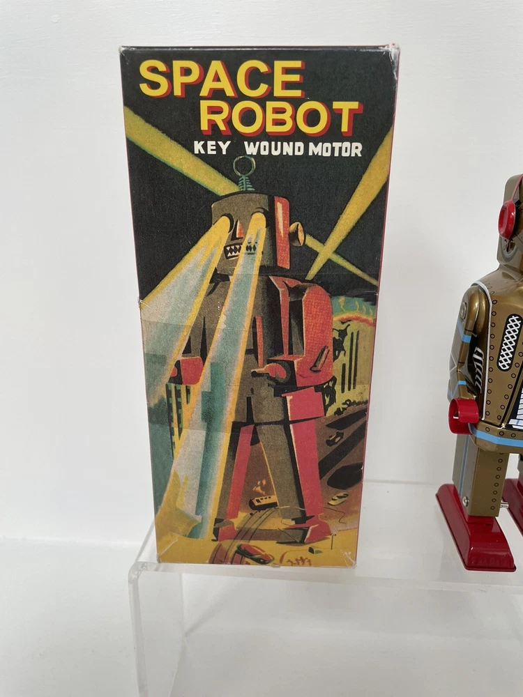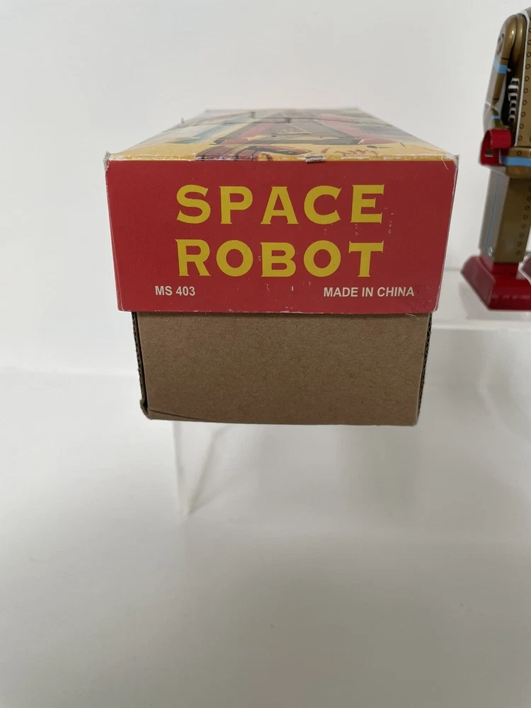 Vintage Retro Style Space Robot Key Wound Motor MS 403 - Boxed and Working Robot is in good working order with some minor age wear through use. This is in the retro style but we believe this is a more modern reproduction. Still looks great on display in a collection and is a lot cheaper than buying a vintage robot. UK postage we wills send via tracked delivery with Royal Mail. International buyers we will send via eBay's global shipping programme.