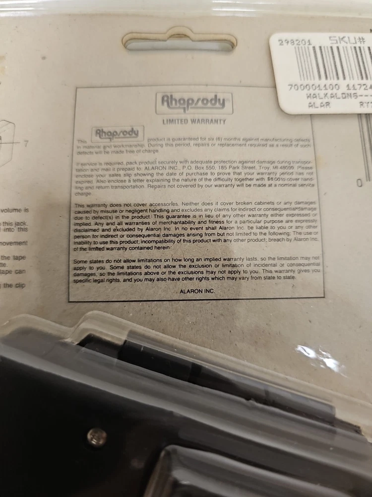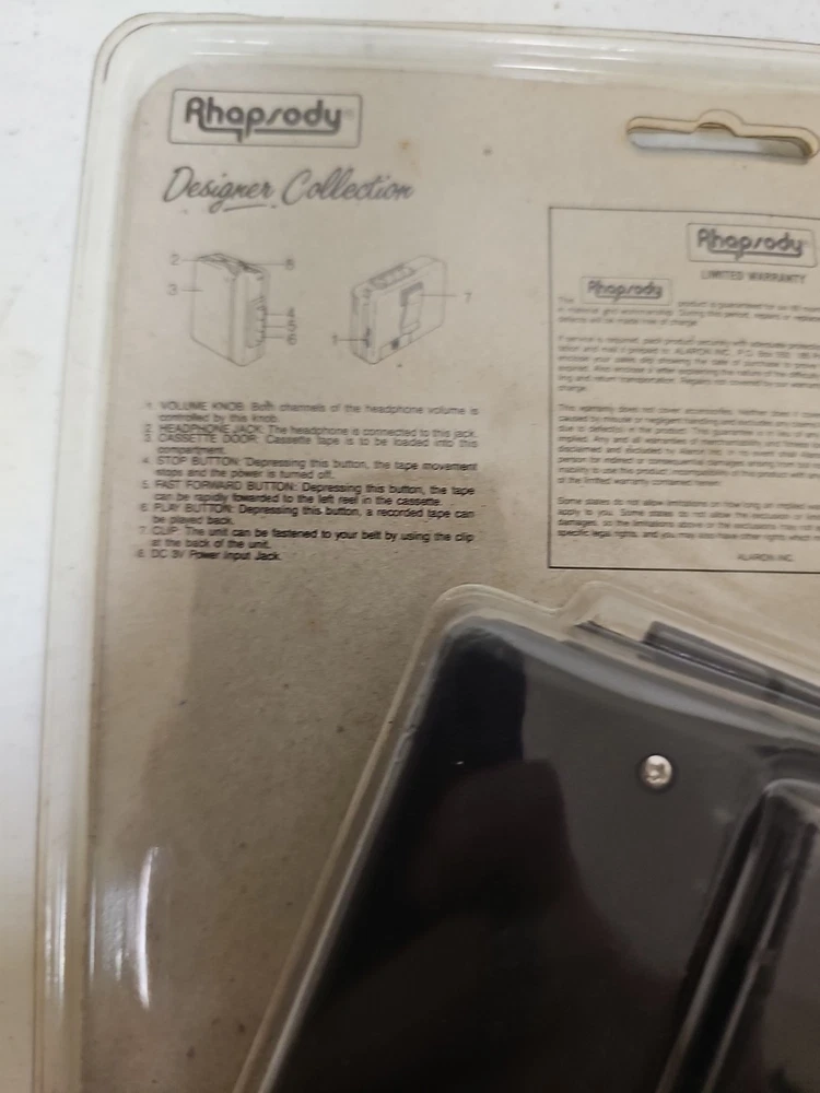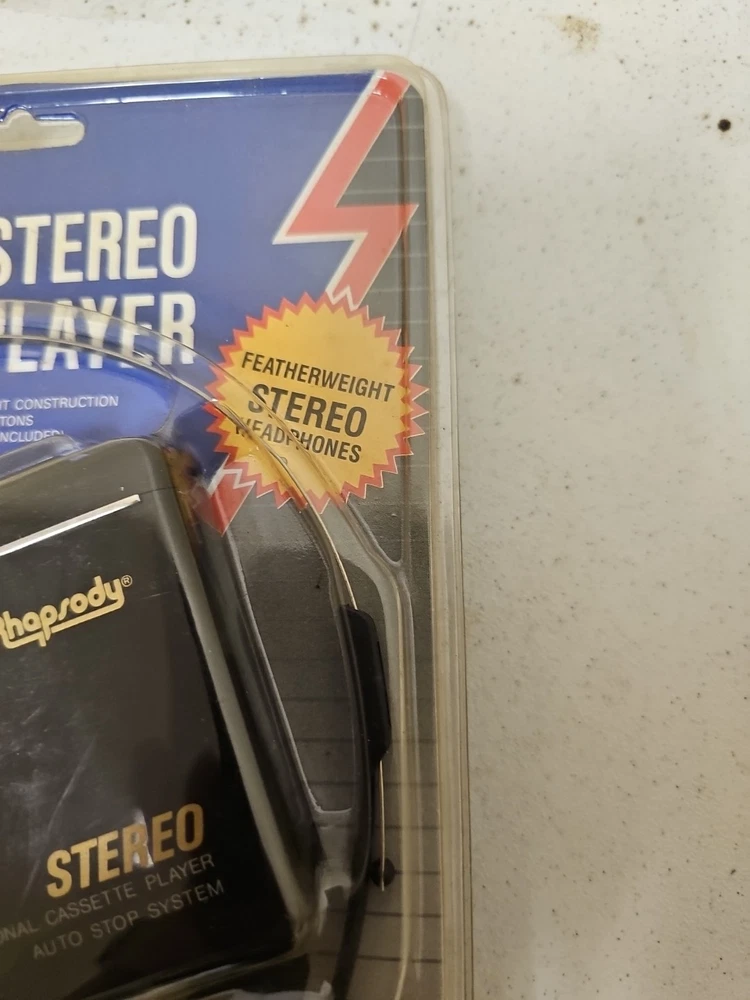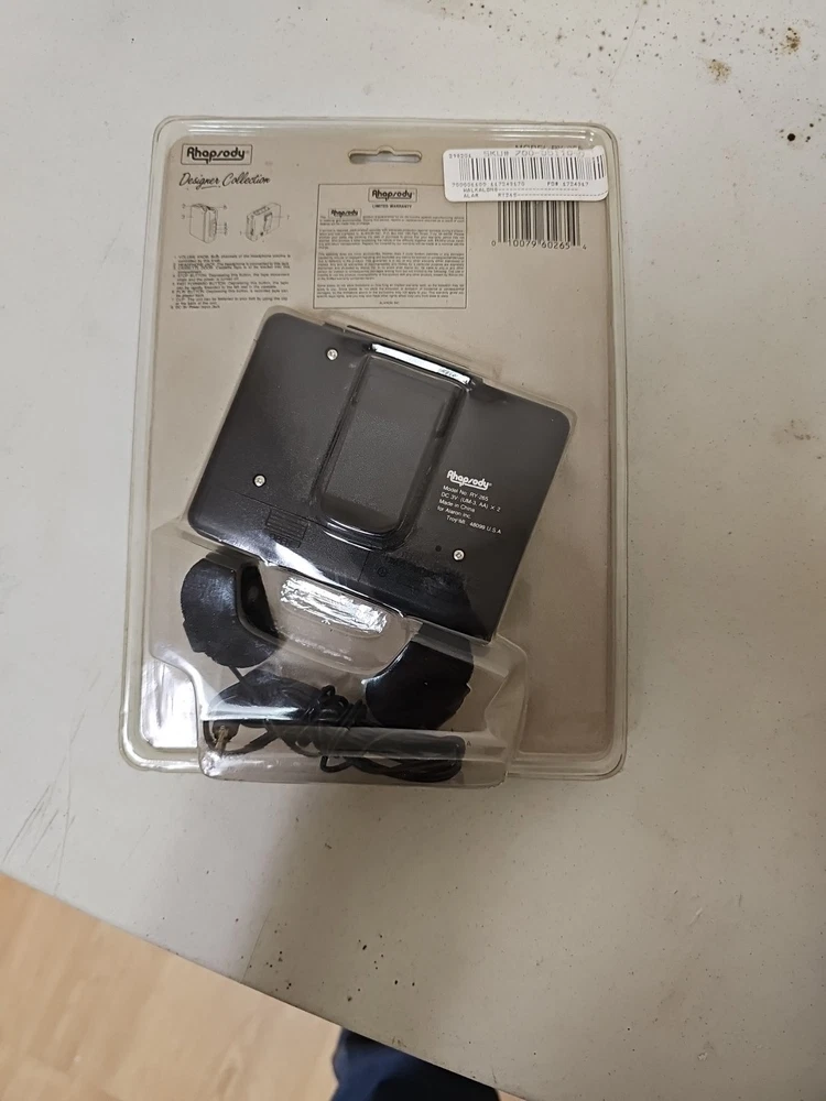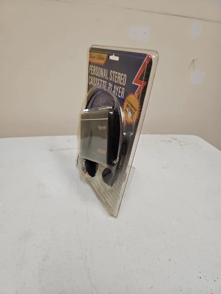 This vintage Rhapsody portable cassette player is perfect for those who love the classic sound of cassette tapes. It features an AM/FM band and a headphone jack for easy listening on the go. The unit is in great shape and ready to use. With its sleek black color and compact design, this cassette player is perfect for any music lover. It comes with an auto stop system and a DC 3V power input jack for easy operation. This unit is a must-have for any collector or music enthusiast who wants to experience the nostalgia of classic music.