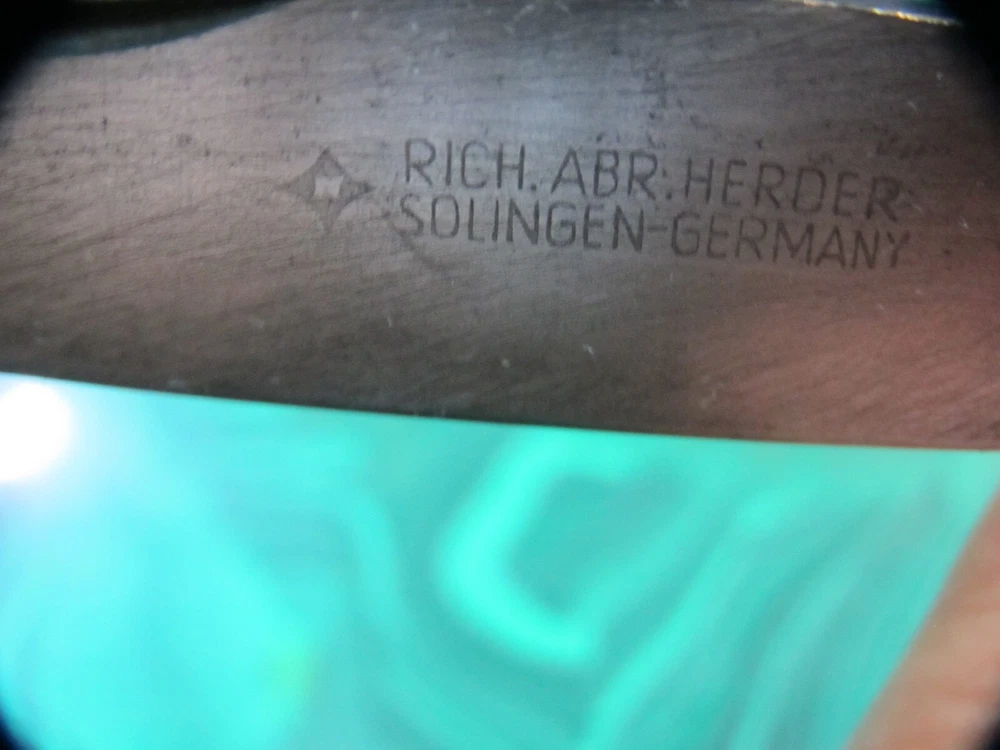 Vintage Rich ABR: Herder Knife . Made in Solingen Germany . Original hand crafted Wood Handle . The knife has a lot of snap and no wobbles in the blade . Measures: about 8.5 inches open X 4 5/8 inches closed . I think this might be from as early as 1930s - 1960s