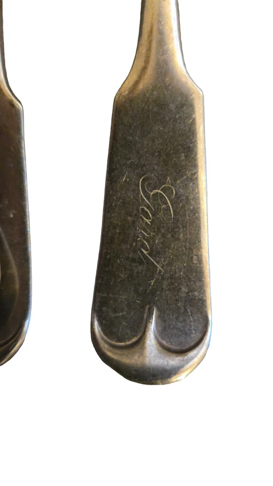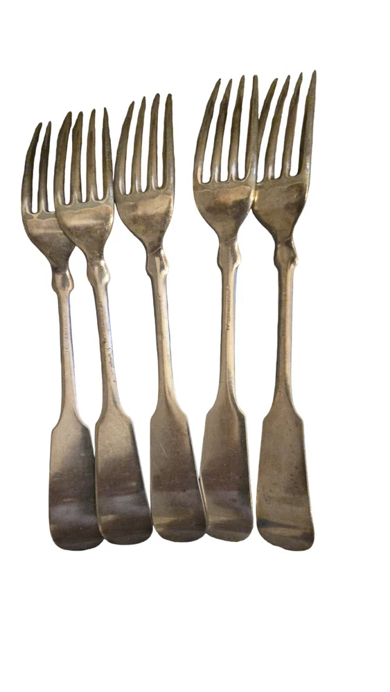 Add some vintage flair to your dining table with this beautiful set of 5 forks from 1847 Rogers Bros. The coin pattern and monogrammed "Gard" make these forks a unique addition to any collection. Crafted from silverplate, they are durable and perfect for everyday use. Perfect for collectors or anyone who appreciates antique silverware. I STRUGGLED FINDING.WHAT THESE QERE EXACTLY BUT ONE LIATINF HAD RHEM AS COIN PATTERN. IM NOT POSITICE. THEY APPEAR TO HAVE GARD MONGEAMED ON THEM AND ARE OLD AND VINTAGE. HEAVY FORKS LOT OF 5