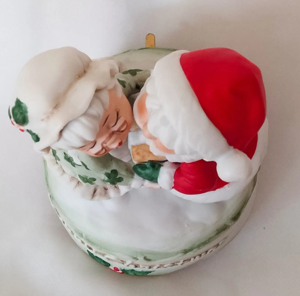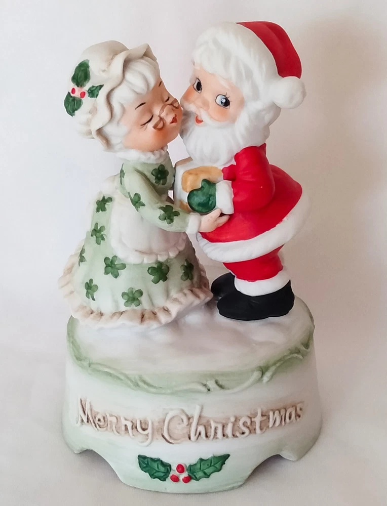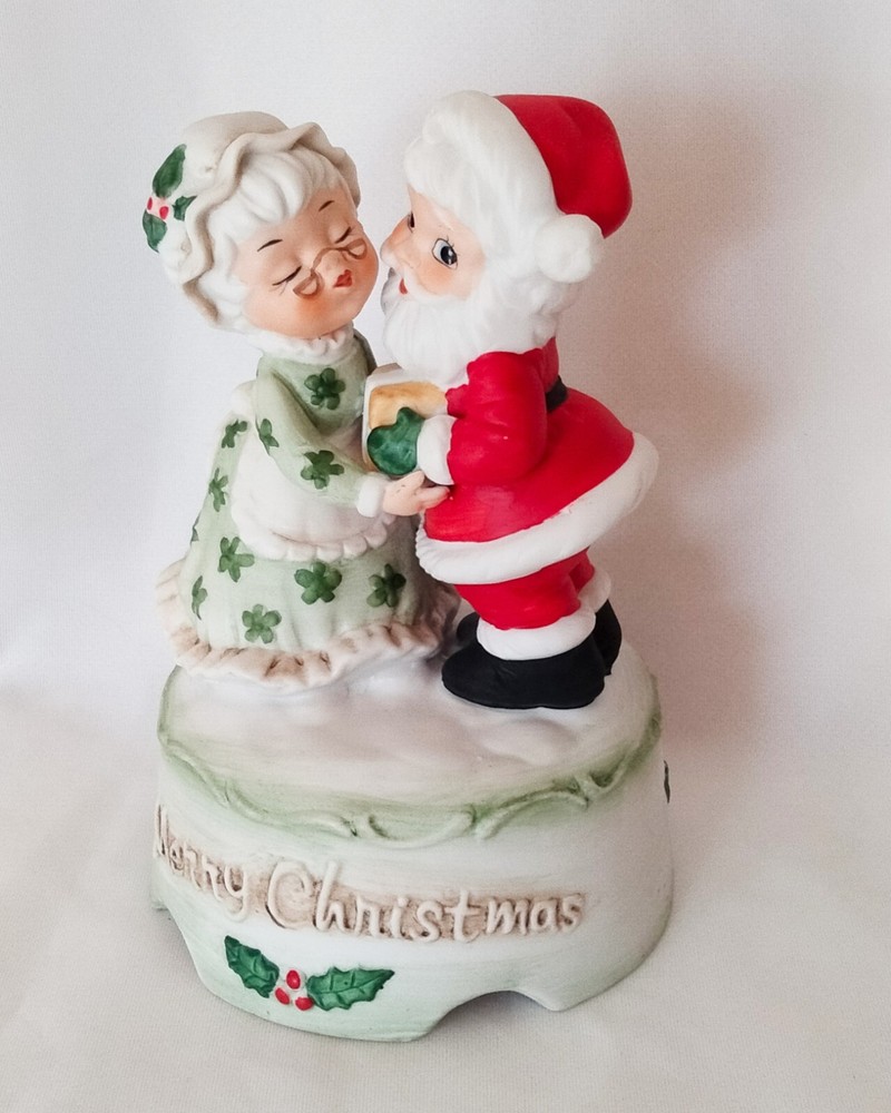 Elevate your festive decor with the charm of yesteryear with this Vintage "Merry Christmas" Santa and Mrs. Claus Dancing Wind Up Music Box. Crafted from high-quality ceramic porcelain, this medium-sized figurine features a delightful dancing scene with a classic matte finish, bringing a touch of nostalgia to your holiday celebrations.The piece is beautifully presented in a red, green, and white color scheme that captures the spirit of Christmas. As a single wind-up music box, it not only serves as a decorative piece but also plays a melodic tune to add an auditory layer to your seasonal decorations. Proudly made in Taiwan, this unbranded collectible is sure to be a conversation starter and a cherished addition to your Christmas tradition.