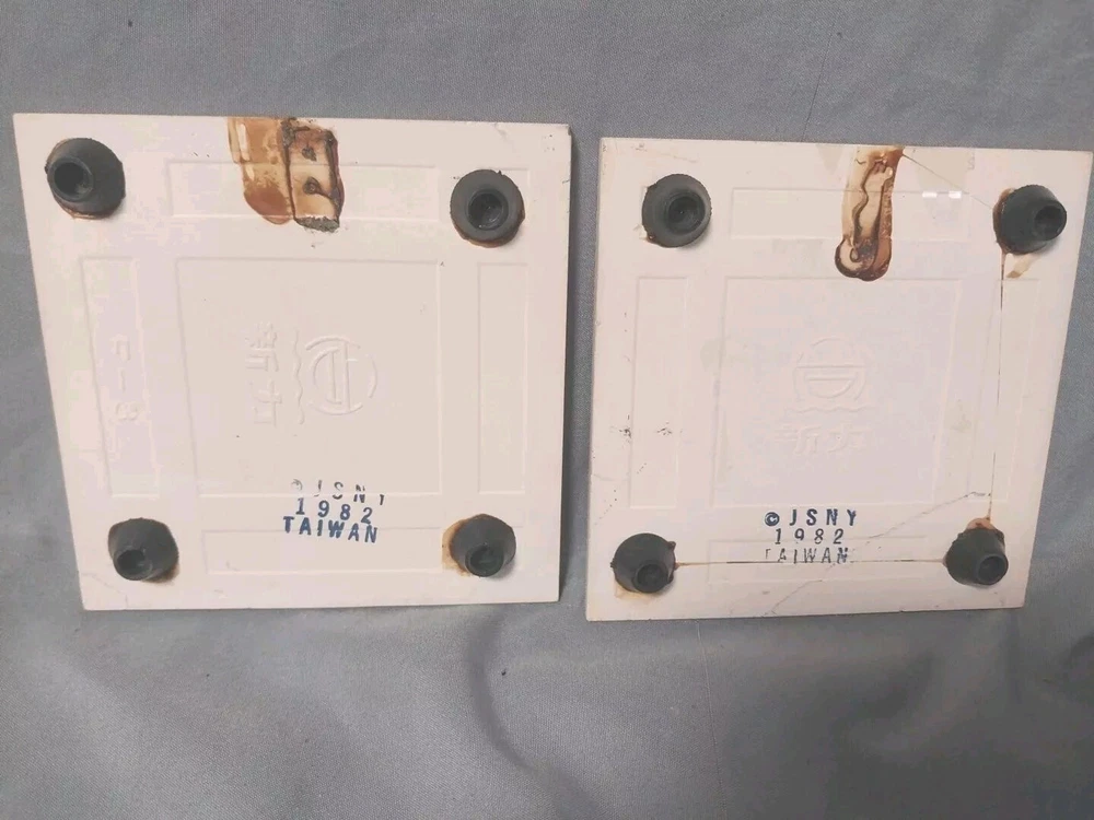 Vintage Set Of 2 1982 Christmas Trivets tile ceramic JSNY Taiwan Santa 4x4