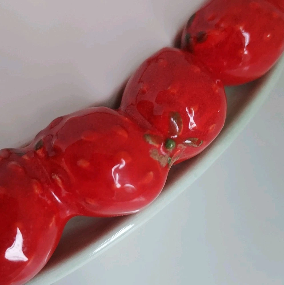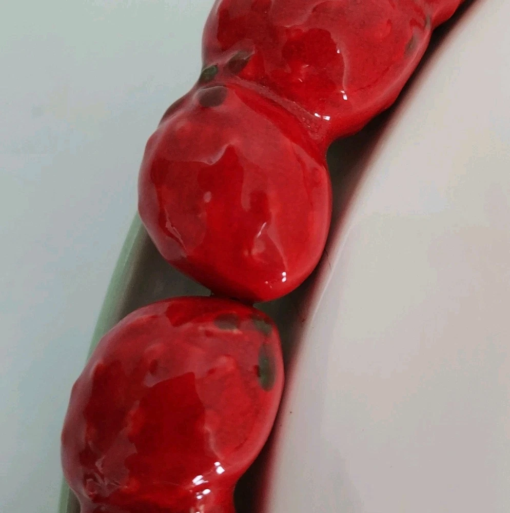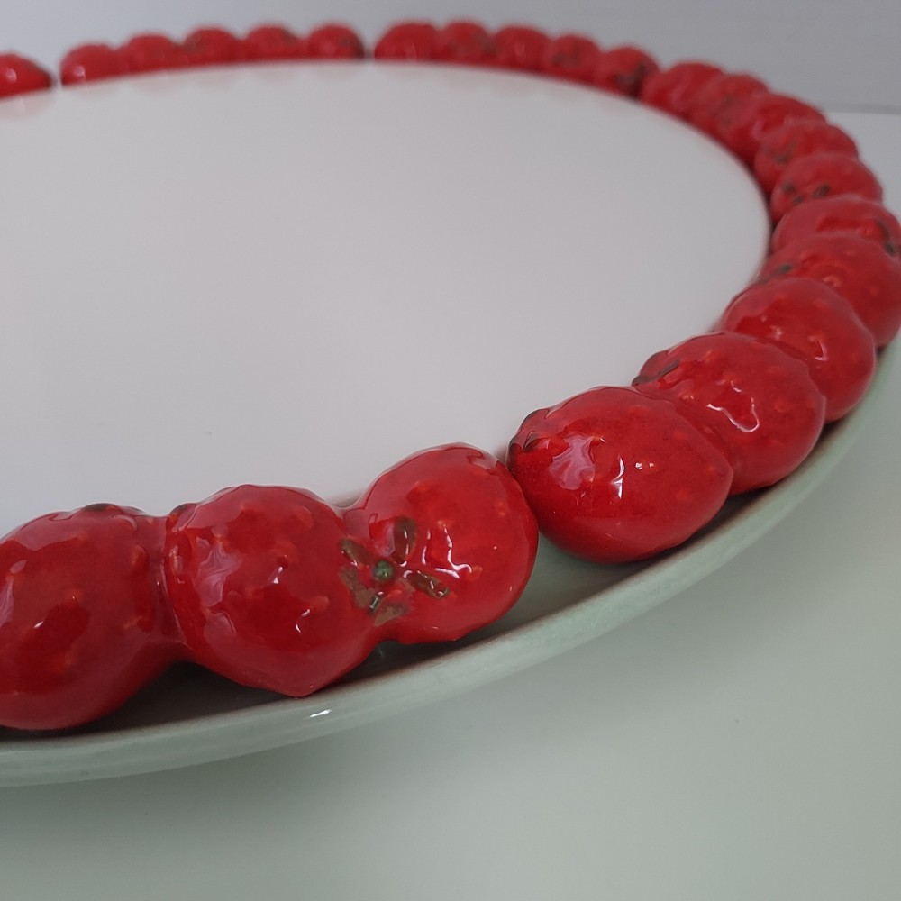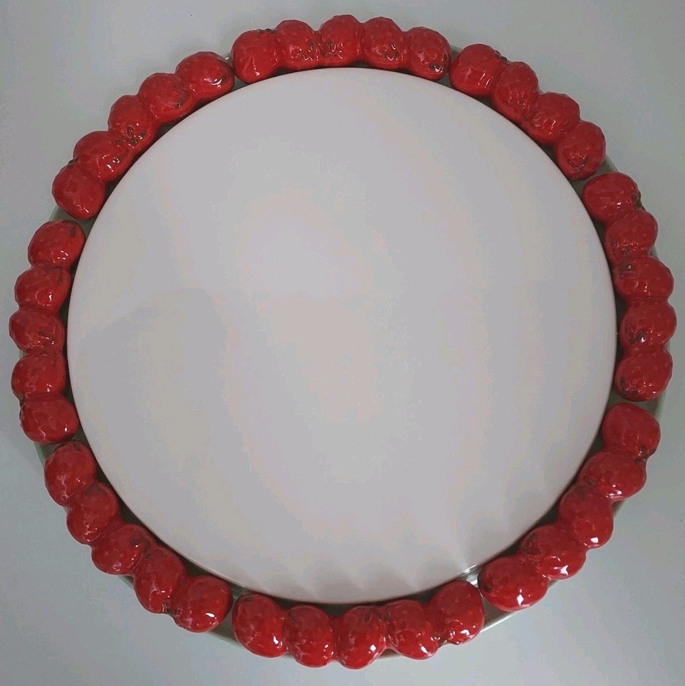 Vintage Shafford Ceramic Strawberry Design Rim 12.75" Cake Pie Plate Japan. This plate is in very good condition with no chips or cracks.