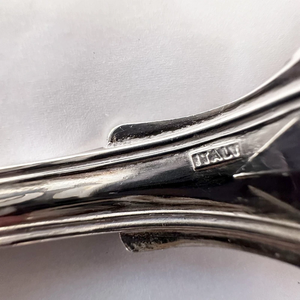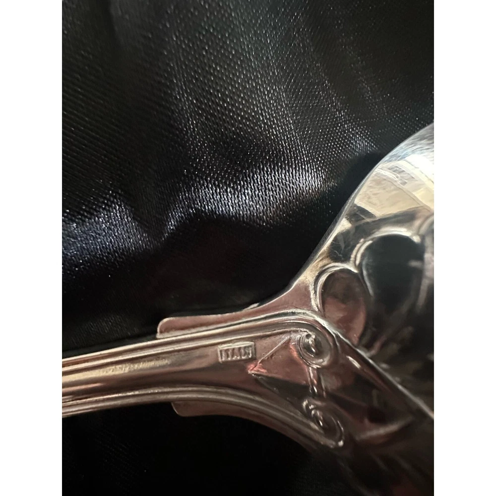 Vintage Sheffield Italy King Pattern 13.5" Silver Plated Serving Spoon This Large Italian made silver-plated Stuffing / Serving Spoon would look beautiful and enhance any stuffing presentation on your special occasion table. The pattern is the Kings, a very classic traditional pattern that has been made by silver makers for centuries. This serving spoon was manufacutred in Italy for the Sheffield Silver Co. It is marked “the Sheffield Silver Co” “silverplate” “Italy” on the back. The Spoon would be a great addition to collection you already have or a start to new collection for yourself or as a gift, say for a wedding present to a new Bride and Groom. Item in the Photos is the exact item you are purchasing. This is a Vintage and shows the expected wear for an item of this type. See Photos. I accept all reasonable offers. SHIPPING: I use USPS for mailing with packages arriving 2-3 days after mailing. All items purchased between Monday and Friday by 12pm will ship next day. All items purchased on Saturday or Sunday will ship the following Monday. Let me know if expedited mailing is required.
