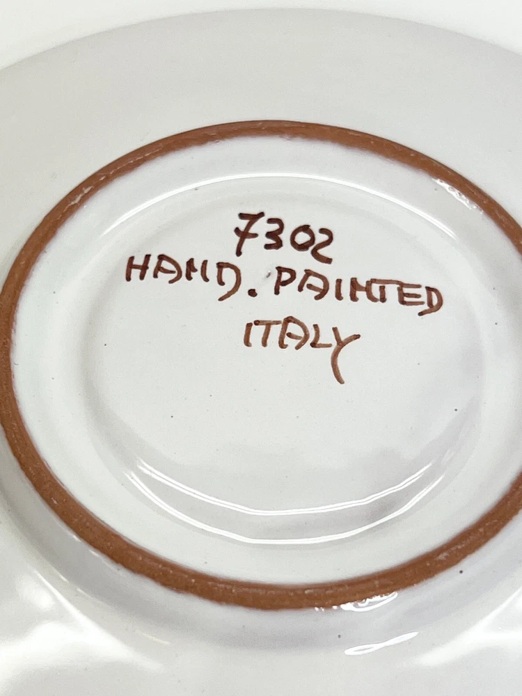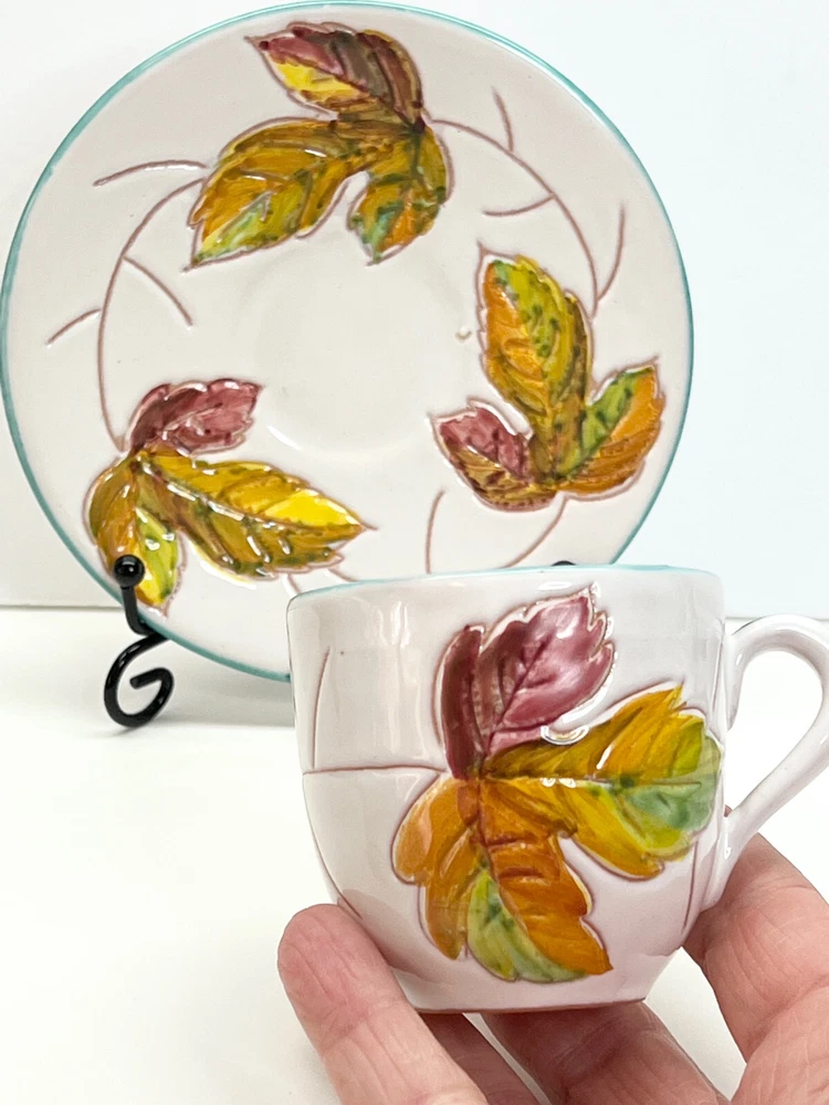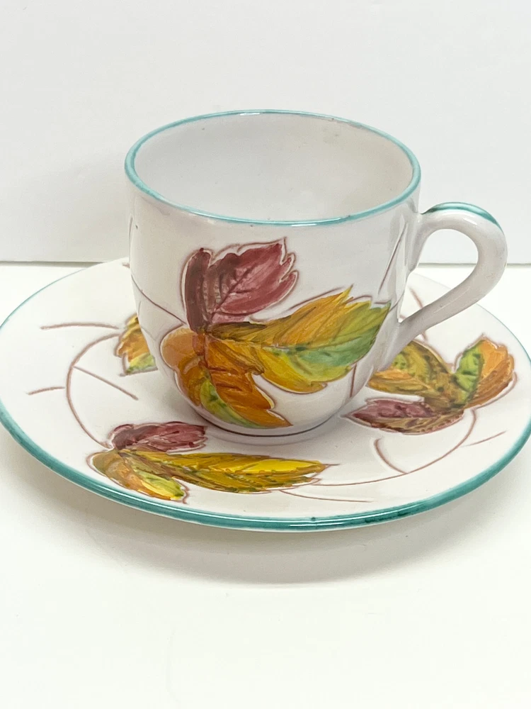 Vintage Small Teacup Hand-painted With Autumn Colors From Italy Leaf Design. A couple of spots where it is missing glaze but no chips or cracks , please check the photos . It is a beautiful little cup and saucer set