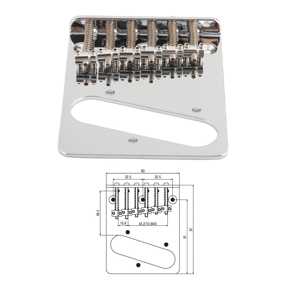 100% Brand New and High quality Good Quality and Finish Top Load or String through body Six saddle bridge with intonation and height adjustments for each string The distance is 54mm(2.13inch) from the first hole to the last The Size is 97.5*80mm(3.84*3.15inch) from side to side. Please be sure to verify the dimenisons to confirm whether the item can fit your guitar when you order it. Package Include: 1 x Bridge 1 x Wrench 3 x Screws