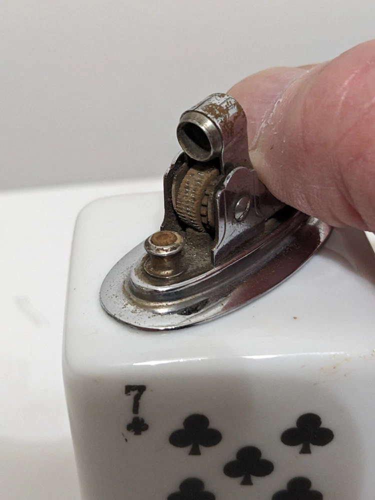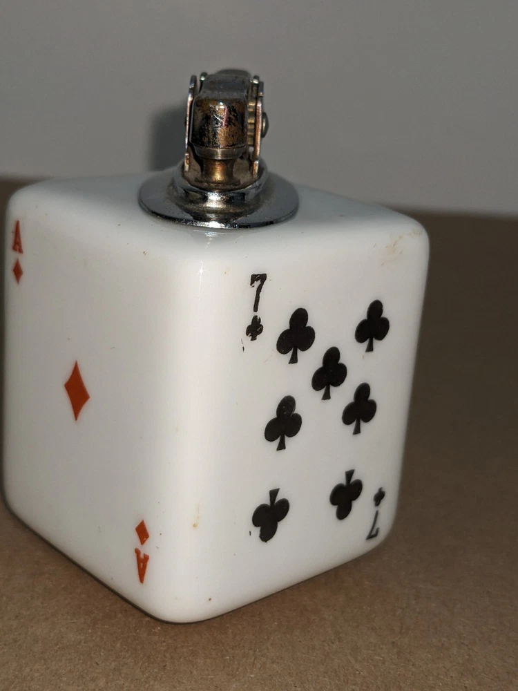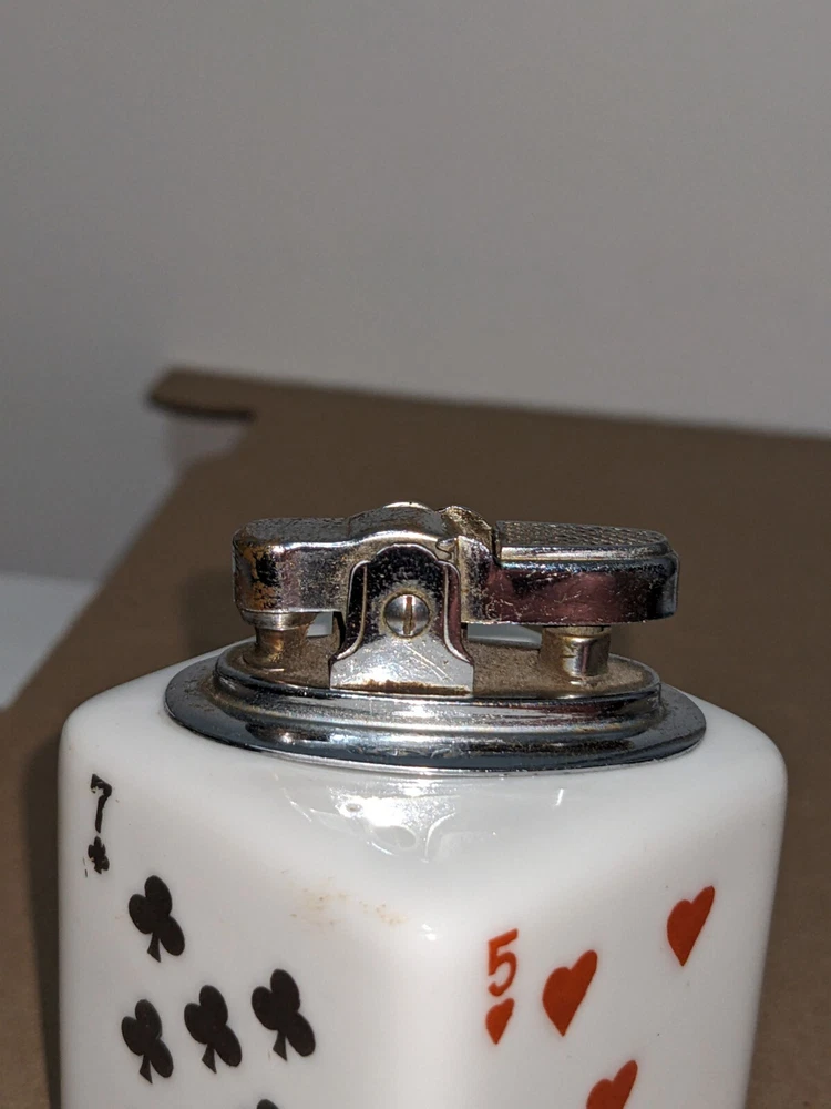 Another piece of history probably from the 70s, cool old cigarette lighter from back when probably most people smoked. Still in nice displayable condition. It measures about 1 13/16 wide and about 2 3/4 high with the striker. If you want to use this still I would say a new wick and flint would be in order maybe a drop of oil. Please ask any question you may have prior to purchase, Thanks for looking!