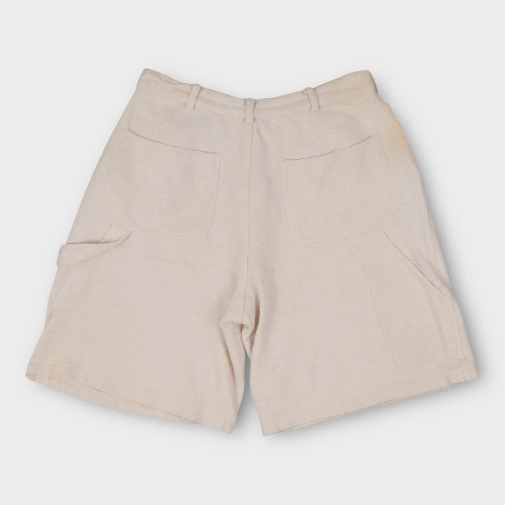 Upgrade your casual wardrobe with these vintage sweat shorts from Kearney House. Featuring a zip closure and drawstring waist, these cargo-style shorts are both stylish and functional. The 5-pocket design provides ample storage space, while the flat front and mid-rise fit give them a classic, timeless look. Perfect for summer, fall, or spring, these shorts are made from easy-care cotton material and are machine washable for your convenience. In addition to their practical features, these shorts also boast a hipster and school-themed design, making them a versatile choice for any casual occasion. With a solid white color and adjustable waist, these shorts are sure to fit comfortably and look great on any man. Don't miss out on this vintage gem! Tag Size: Men’s Large Best Fit: * Men: M/L Condition: Minor Yellowing Towards Waist Approximate Flat Measurements: * Waist: 15” * In Seam: 19” * Out Seam: 9” All items are second hand, many being vintage and may have small imperfections. Anything major is noted.