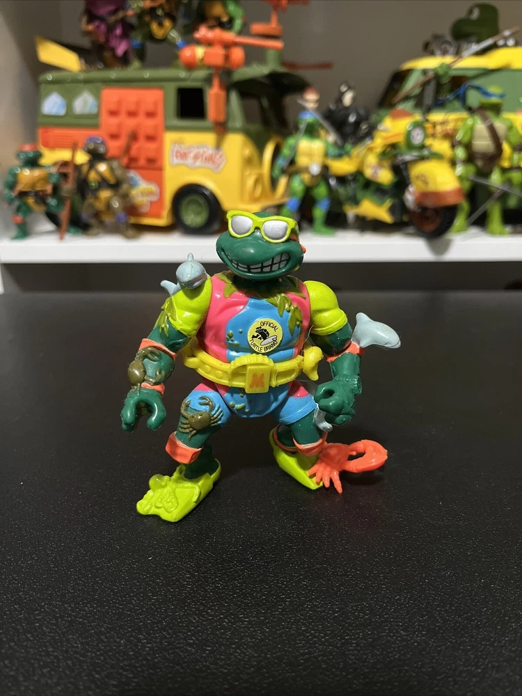 Time Period Manufactured:1990-1999Year Manufactured:1990Character:Michelangelo, Mike Sewer SurferGenre:Movie & TVItem Height:4 inOriginal/Licensed Reproduction:OriginalVintage:YesUPC:Does not applyTV Show:Teenage Mutant Ninja TurtlesFranchise:Teenage Mutant Ninja Turtlesgtin13:Does not applyTheme:TV, Movie & Video GamesAnimal Species:TurtleType:Action FigurePackaging:Without PackagingScale:1:16Brand:Playmates ToysMaterial:Plastic