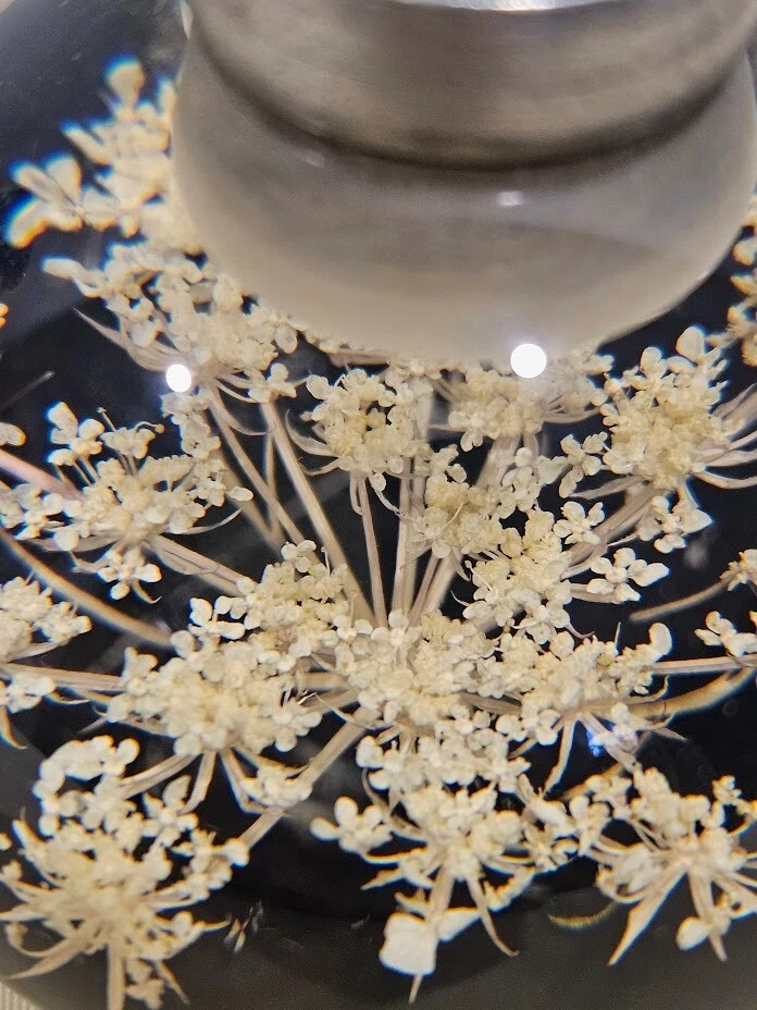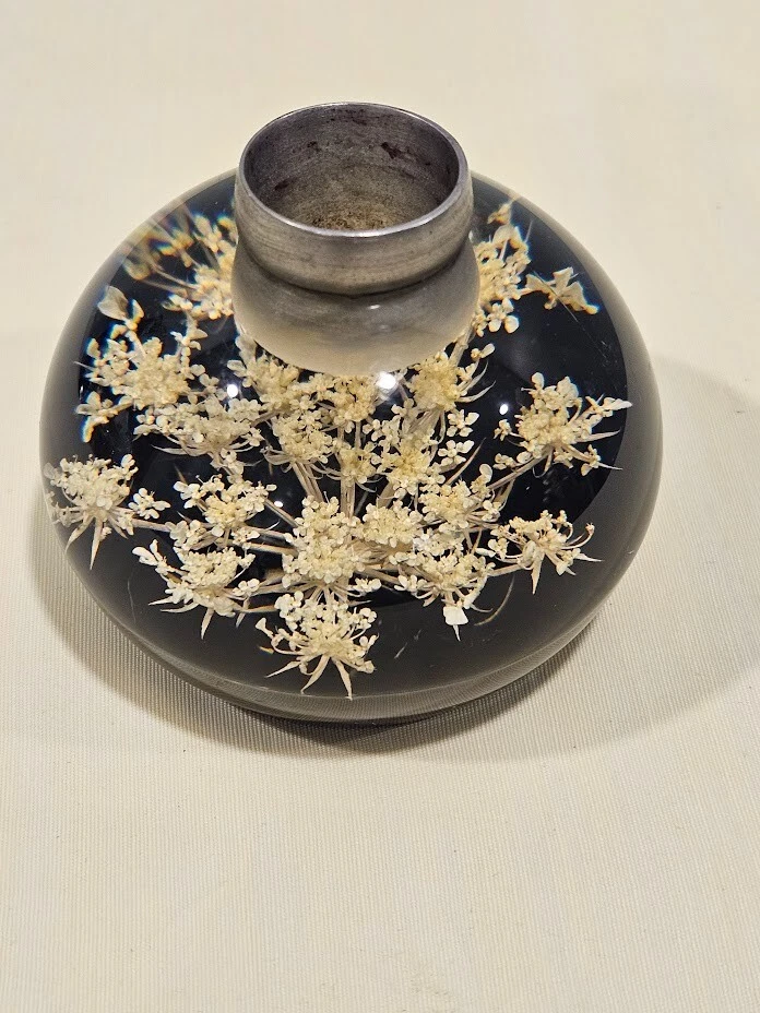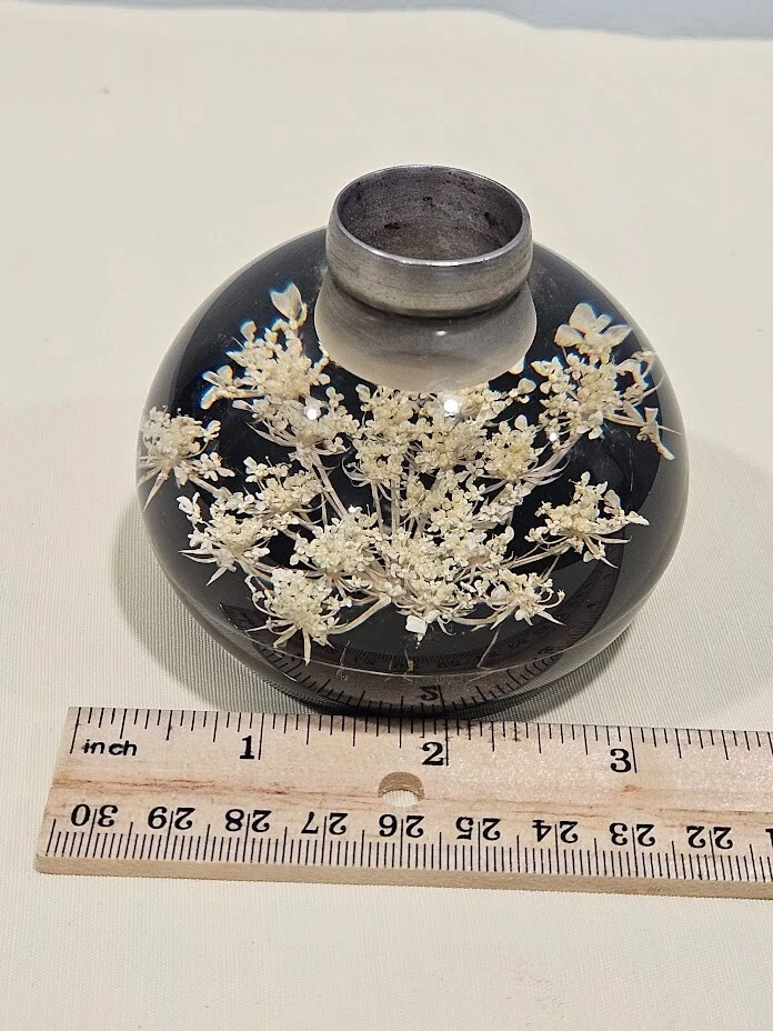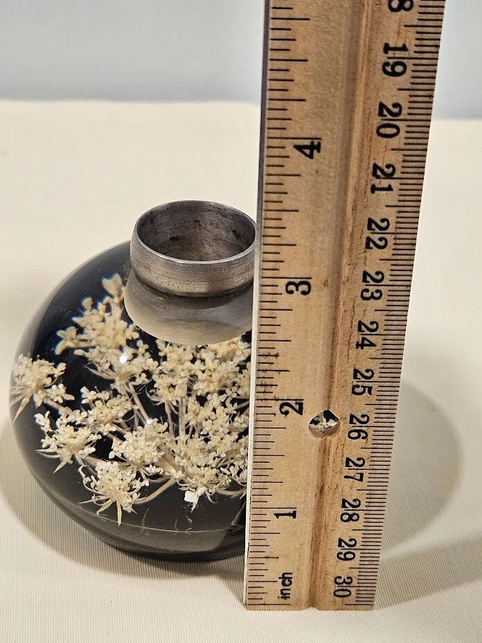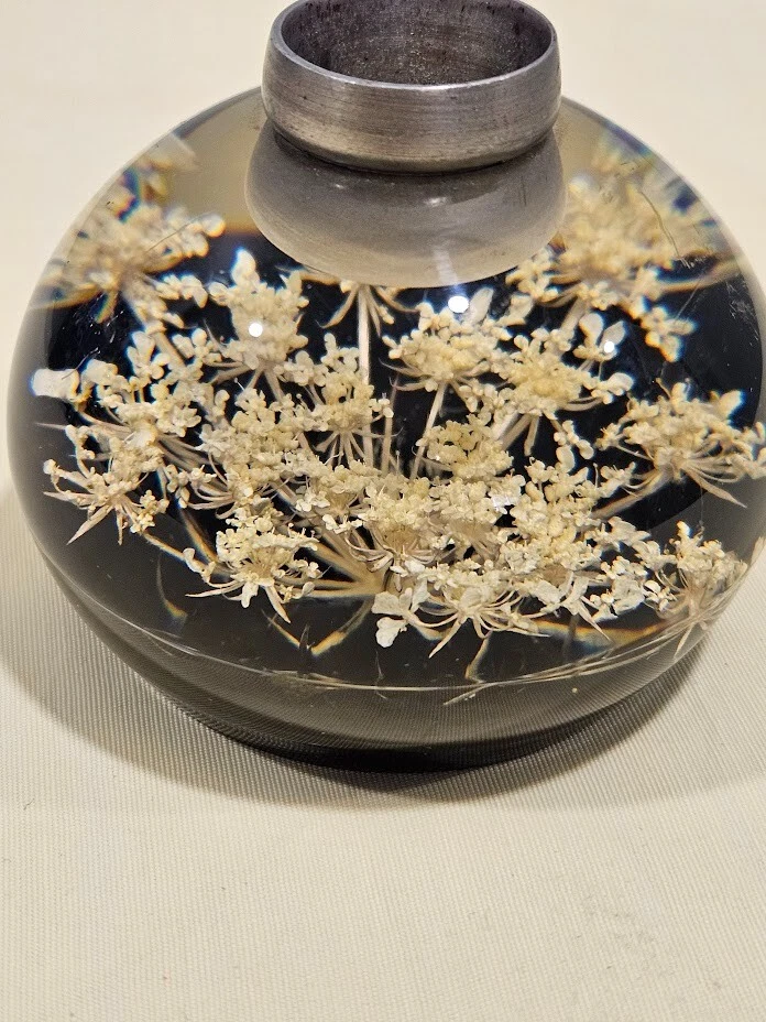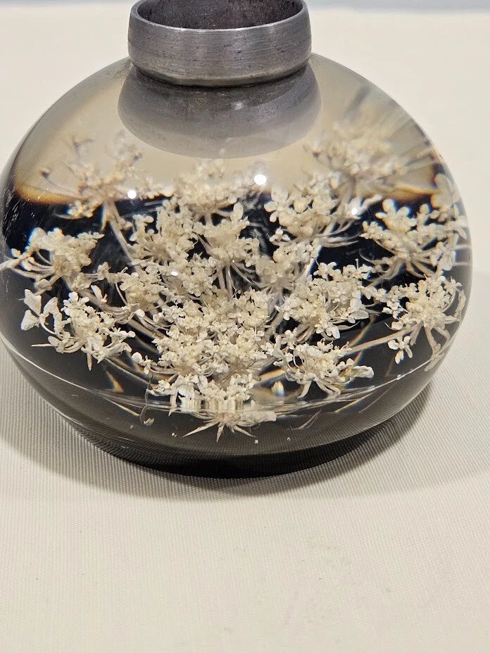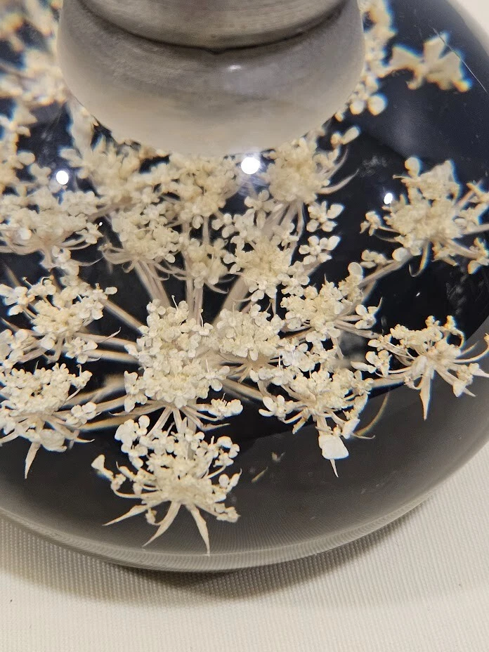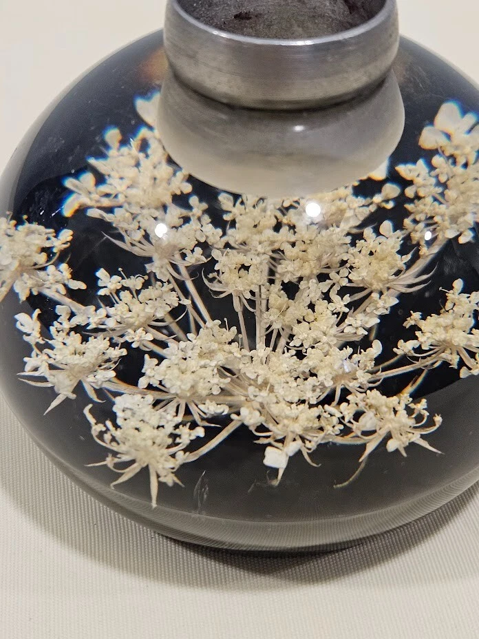 Tarax paperweight candle holder. The clear and white acrylic material with white dried flowers. Handmade in Canada, this unit is about 3.5 inches in size and features a flower design. Ships from a smoke free home! Please see all photos for exact item condition. Thank you for checking out my store! All items are shipped within 1 or 2 business days. Make a bundle to save on shipping cost.
