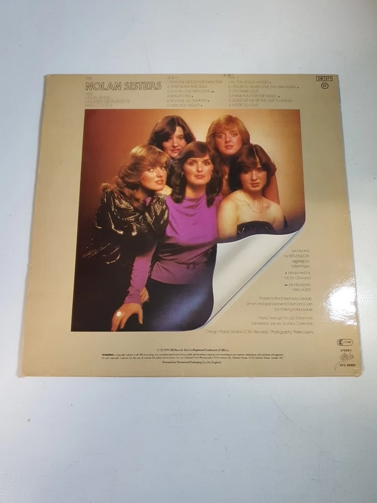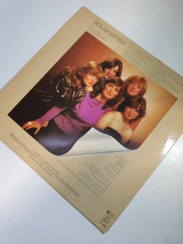 This vintage vinyl LP album by The Nolans, titled "Nolan Sisters," is a first edition release from 1979 under the EMI record label. The 12" record features 33 RPM speed and is in excellent (EX) grading, while the cardboard sleeve and inner sleeve are in good (G) grading. The album is a great addition to any music collection, perfect for any occasion, and is sure to bring back memories of the 1970s. The LP is in black colour and features original cover and inner sleeve. This classic electronic and pop album is in English language and was manufactured in the United Kingdom.