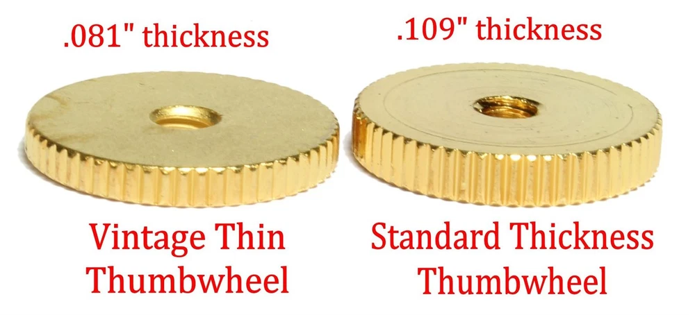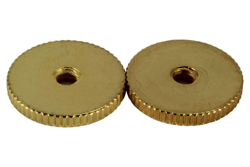 Brass Vintage Thin ABR-1 Thumbwheels Made in the USA Set of 2Gold plated Fits USA Gibson guitars equipped with ABR-1 bridge SAE 6-32 threads .081" (2.06 mm) thick and .63" (16 mm) diameter Brass Vintage Thin ABR-1 Thumbwheels Made in the USA Set of 2 Gold plated Fits USA Gibson® guitars equipped with ABR-1 bridge SAE 6-32 threads .081" (2.06 mm) thick and .63" (16 mm) diameter Combined Shipping We do combine orders to lower shipping costs for our customers. To receive a combined shipping quote, please use eBay's "Add to Cart" button for each item. This will provide an estimated shipping cost based on your order's total weight. In most cases, eBay's shipping charges will be accurate. International Customers: If you don't see the "Add to Cart" or "Add to Basket" button you will need to use the US site "www.ebay.com" instead of your country's eBay site(ex. - www.ebay.au, www.ebay.ca, www.eBay.it, etc.) Shipping Orders placed before 2 pm Monday-Friday(US EST). No shipping on weekends and holidays. Custom products can take up to 2 days to ship. International Shipping Our economy international service or USPS First Class Service is provided by APC Postal Logistics and includes full tracking. The economy international shipping service(APC Postal Logistics) usually arrives within 2-4 weeks with most being delivered by your local post office. Every now and then an order can take a little longer to arrive. Most shipping delays are related to the receiving country's customs processing or problems with shipping addresses. Please make sure to include a valid phone number with your order in case they need to contact you. All international shipments include carrier insurance with a minimum of $100 of insurance. A claim for a lost package cannot be opened until at least 6 weeks have passed. International Buyers – Please Note: Import duties, taxes, and charges are not included in the item price or shipping cost unless specified on your order that is collected by eBay (ie, VAT). If not paid by eBay, the additional charges are the buyer's responsibility. Please check with your country's customs office to determine what these additional costs will be prior to your purchase. Terms If you wish to cancel the transaction please contact us immediately to cancel your order. Orders cannot be canceled after they have been shipped. Returns Returns are accepted as long as the item is returned in brand new condition and in its original(undamaged) package. Please take care of the item if there is any possibility of a return. Refunds will not be issued for items that show any signs of damage uncluding to the original packaging, ie. scratches, tool marks, attempted modification, etc. Use eBay's return system to initiate a return. Buyers are responsible for return shipping unless it is our error. If you believe an error was made by us, please contact us prior to opening a return request. This will allow us to provide you with the best possible customer service. About Us We provide our customers with the best shopping experience. Philadelphia Luthier Tools & Supplies has been selling successfully on eBay since 2009. Our customers have come to expect: Detailed descriptions High quality images Quick dispatching of orders Very fast response to product questions and inquires sent through eBay's messaging system.