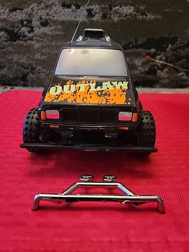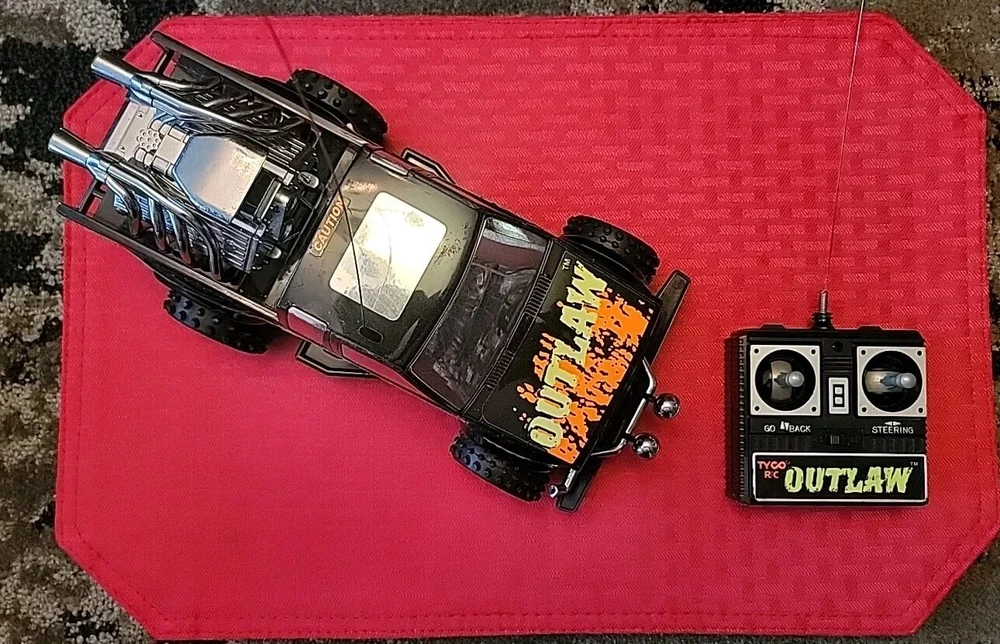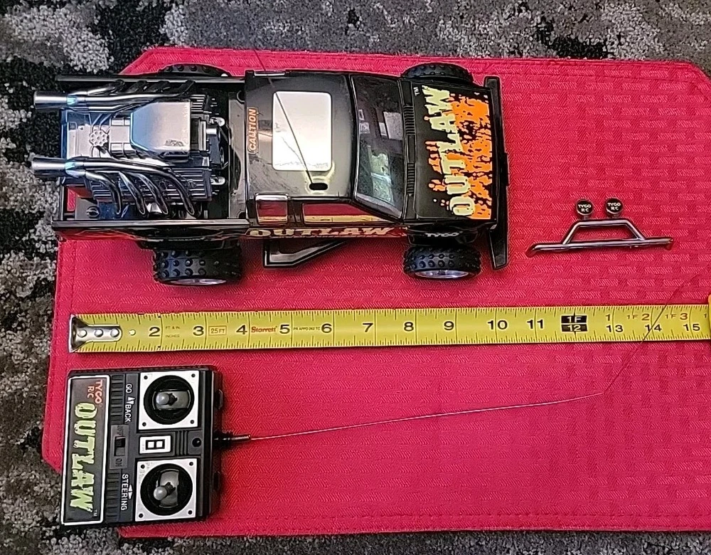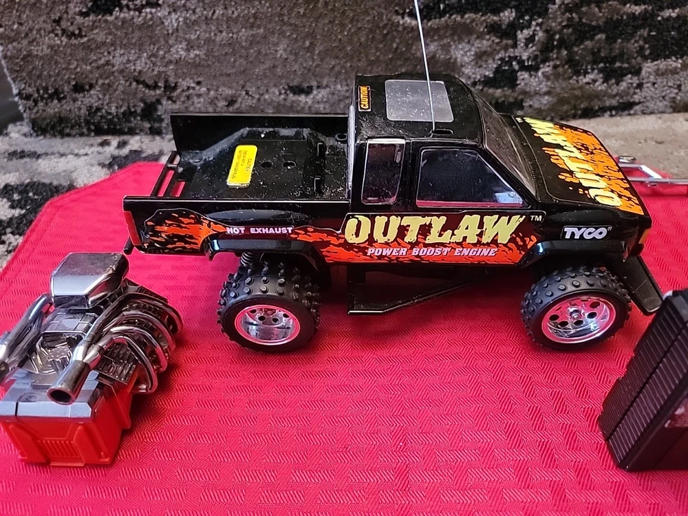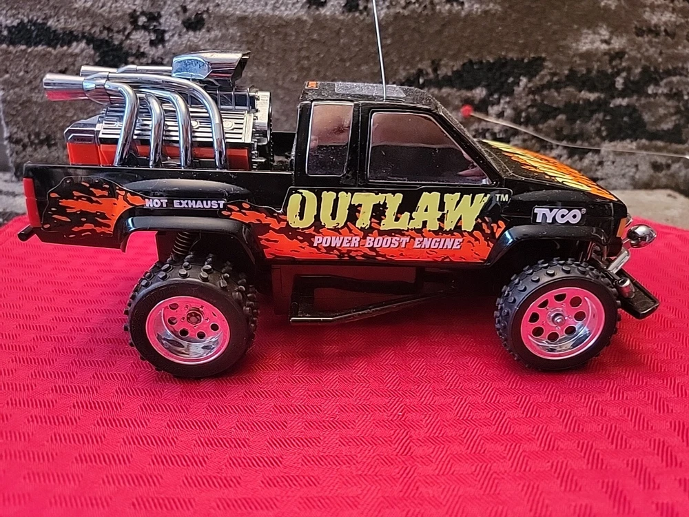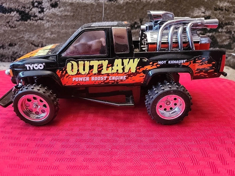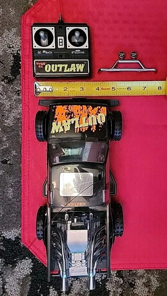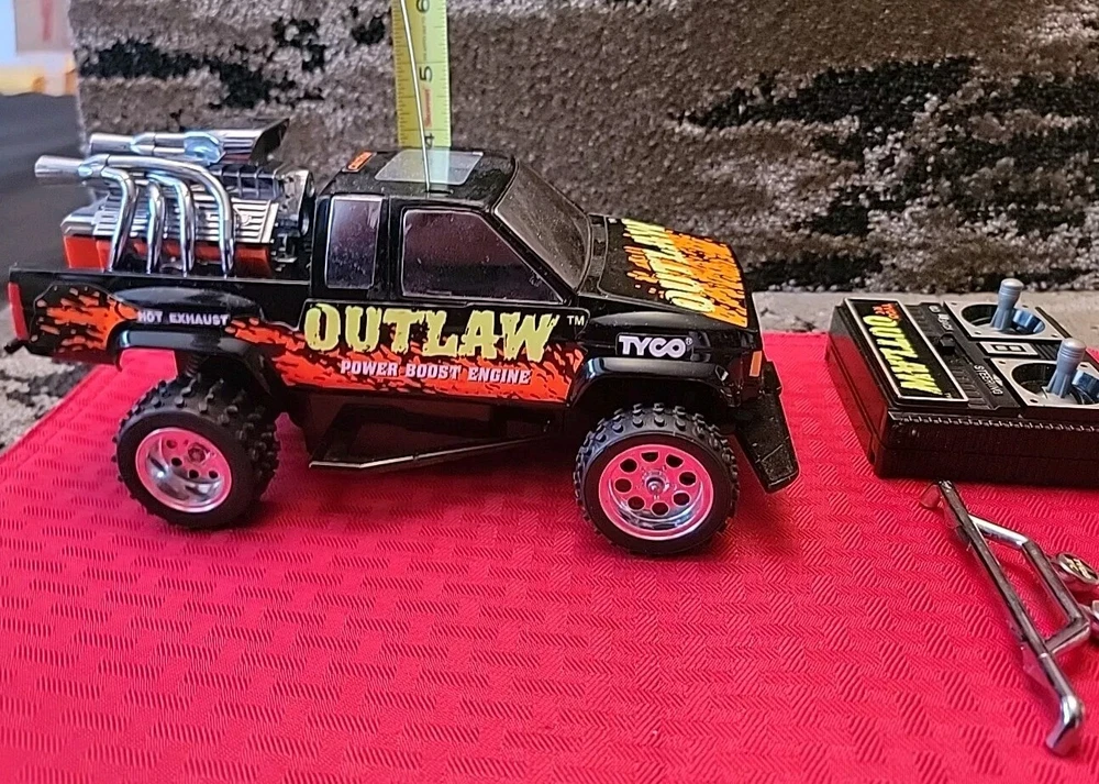 Item is pre-owned, tested, and works. Truck and controller antenna are bent but in fair shape. Battery terminals in the truck have light corrosion on one of the AA batteries terminals but don't affect the function of the vehicle. Item has scratches, marks, and discoloration due to the age of the toy. See pictures for details. Thank you This vintage Tyco OutLaw 27MHz black RC truck has been tested and is ready for action. With a brand name like Tyco, you know this truck is built to last. It's perfect for collectors and enthusiasts alike and is sure to provide hours of entertainment. The truck is designed for ages 12 and up and features a unique Outlaw character family. The truck's black color gives it a sleek and stylish look, while its 27MHz frequency ensures smooth and reliable control. This Tyco OutLaw model is a great addition to any remote-controlled toy collection and is sure to provide endless hours of fun.