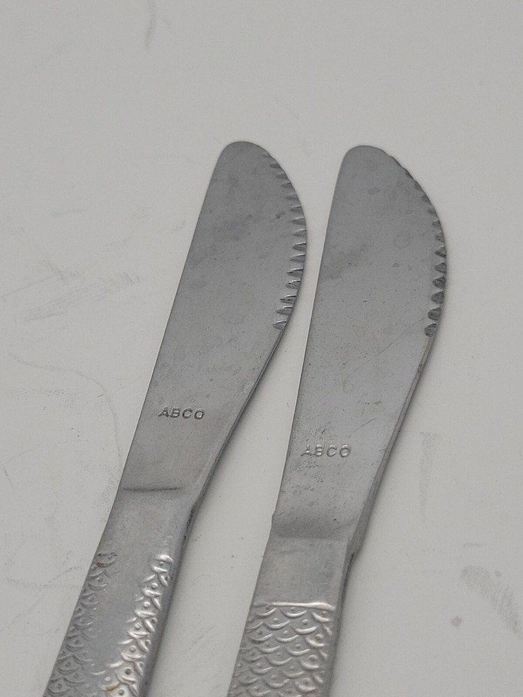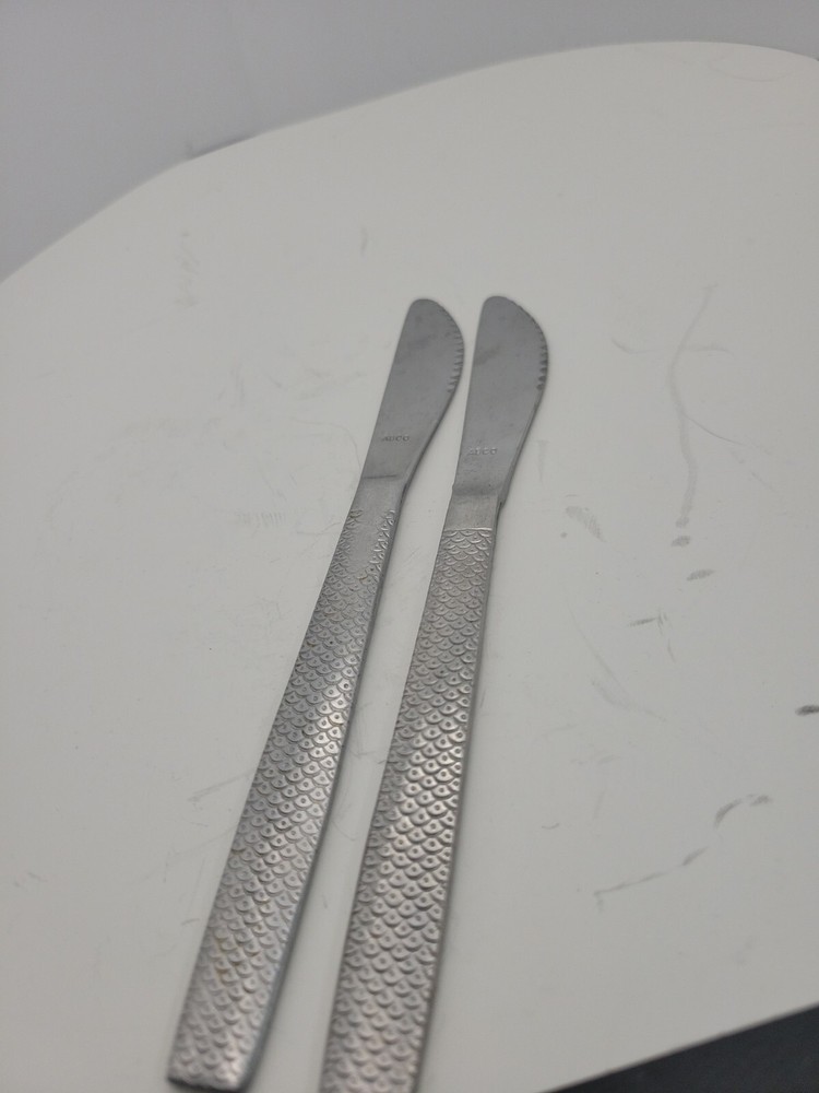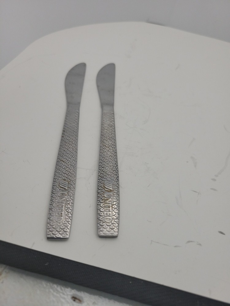 Own a piece of aviation history with this vintage set of United Airlines stainless flatware. Made by ABCO, this set includes two knives and features the iconic United Airlines logo. Perfect for collectors or those wanting to add a touch of airline nostalgia to their dining experience. Don't miss out on this rare opportunity to own a piece of United Airlines memorabilia. I will HAPPILY combine shipping at a discounted cost for any of my listings!