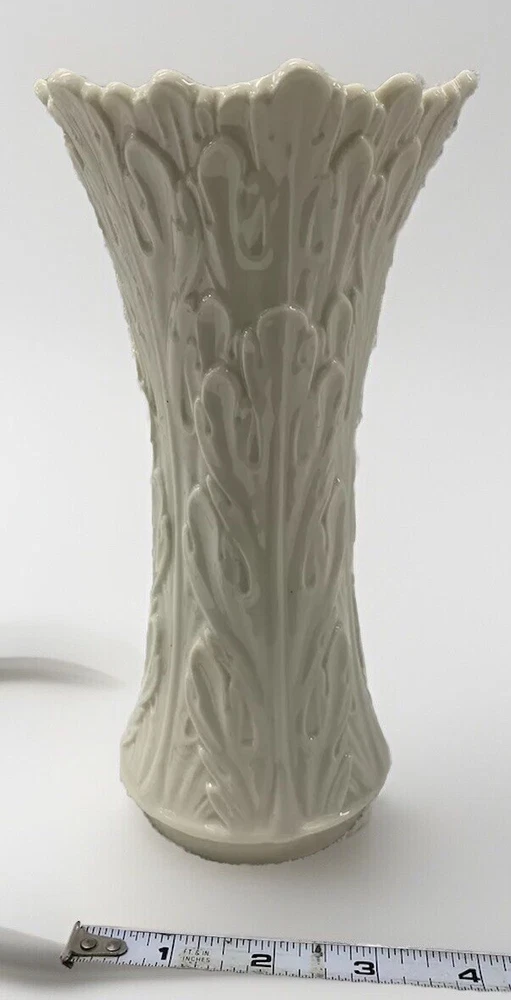 Production Technique:Mass ProductionFeatures:TexturedSize:MediumTime Period Manufactured:Unknowngtin13:Does not applyUPC:Does not applyTheme:Romantic, FloralStyle:TraditionalItem Length:4 inColor:IvoryType:VaseHandmade:NoSubject:Flower VaseCountry/Region of Manufacture:United StatesItem Weight:16 ozItem Height:8.5 inShape:AsymmetricalBrand:LenoxOriginal/Reproduction:OriginalAntique:NoMaterial:PorcelainNumber in Pack:1Pattern:WoodlandItem Width:4 inDepartment:AdultsFinish:Embossed
