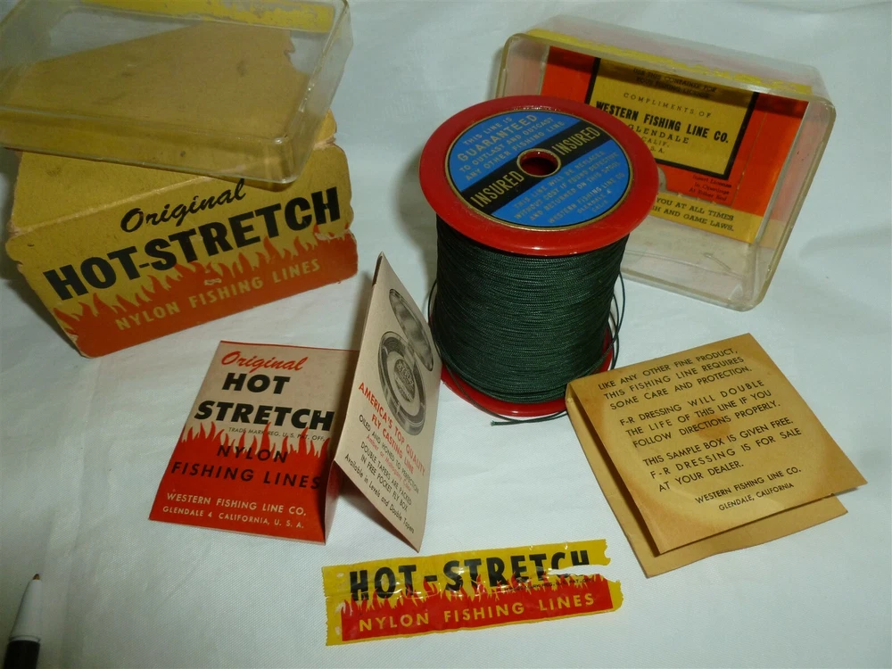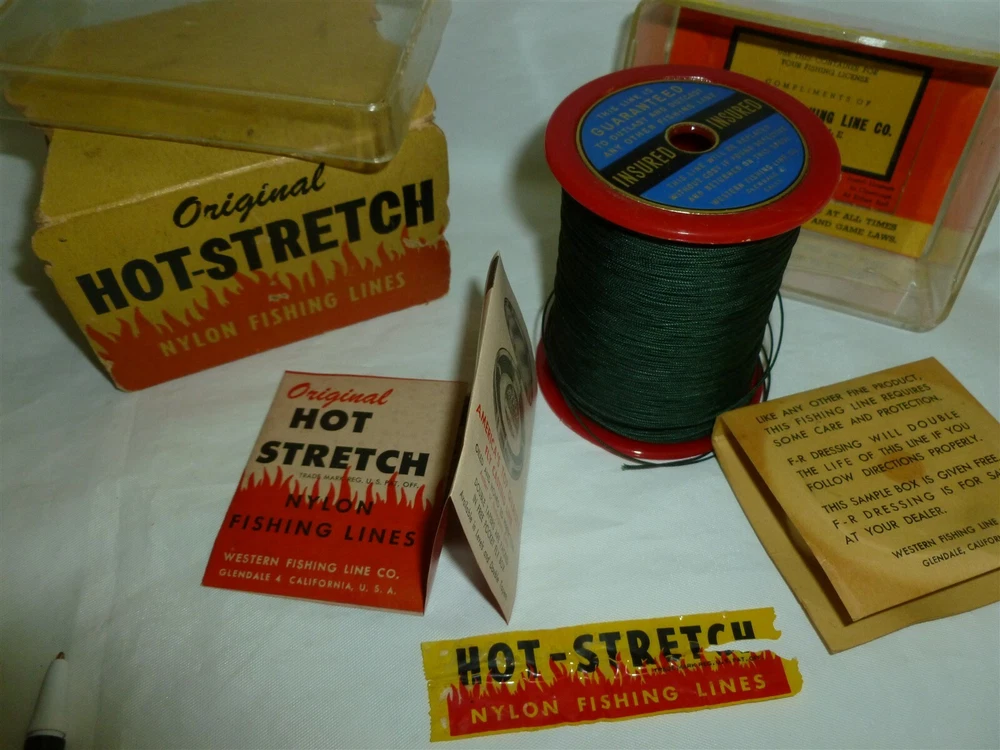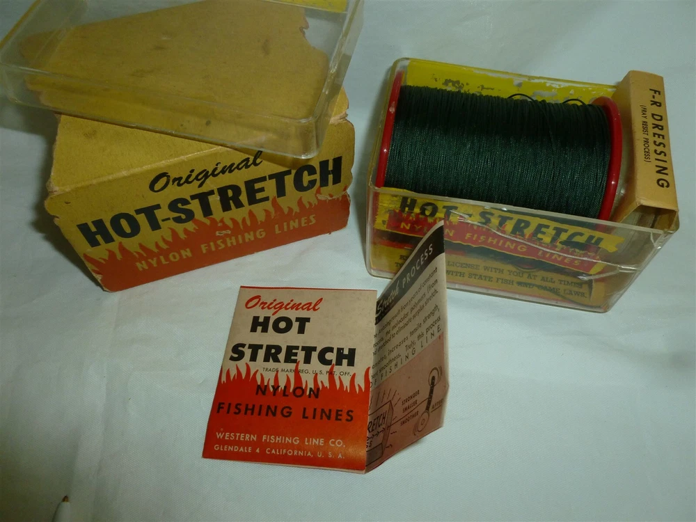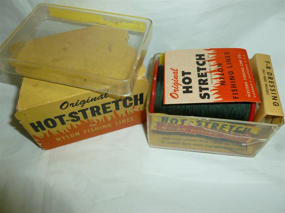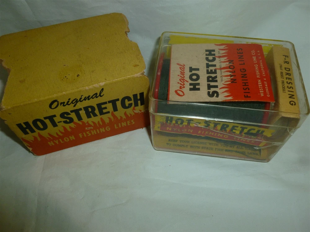 *** FOR MORE GREAT DEALS SEE OUR eBay STORE AT https://www.ebay.com/str/ymee *** This auction is for a Vintage Western HOT STRETCH Fishing Line Set, as pictured. Complete set of HOT STRETCH fishing line with packaging. Check out the pictures! Thanks for looking at our ad. We have a bunch of very cool vintage hunting and fishing items that we will be listing on eBay the next few weeks.... Please check these auctions out in our eBay store under the “FISHING & HUNTING” category. COMBINED SHIPPING COSTS: We like to combine multiple sales and reduce shipping costs. However we get penalized by eBay if we don’t ship paid orders in one business day. So if you want to combine orders on auctions that that come due over several days, please do us a favor. When you win your first auction DO NOT PAY IMMEDIATELY. Drop us a note that you are bidding on more auctions then tell us when you are done bidding. We will then send an invoice with reduced shipping and ship your order in one business day…..If this is too confusing (the eBay rules confuse us too)….do whatever is easiest for you and we will make it right. We appreciate your bids!!!! Powered by SixBit's eCommerce Solution
