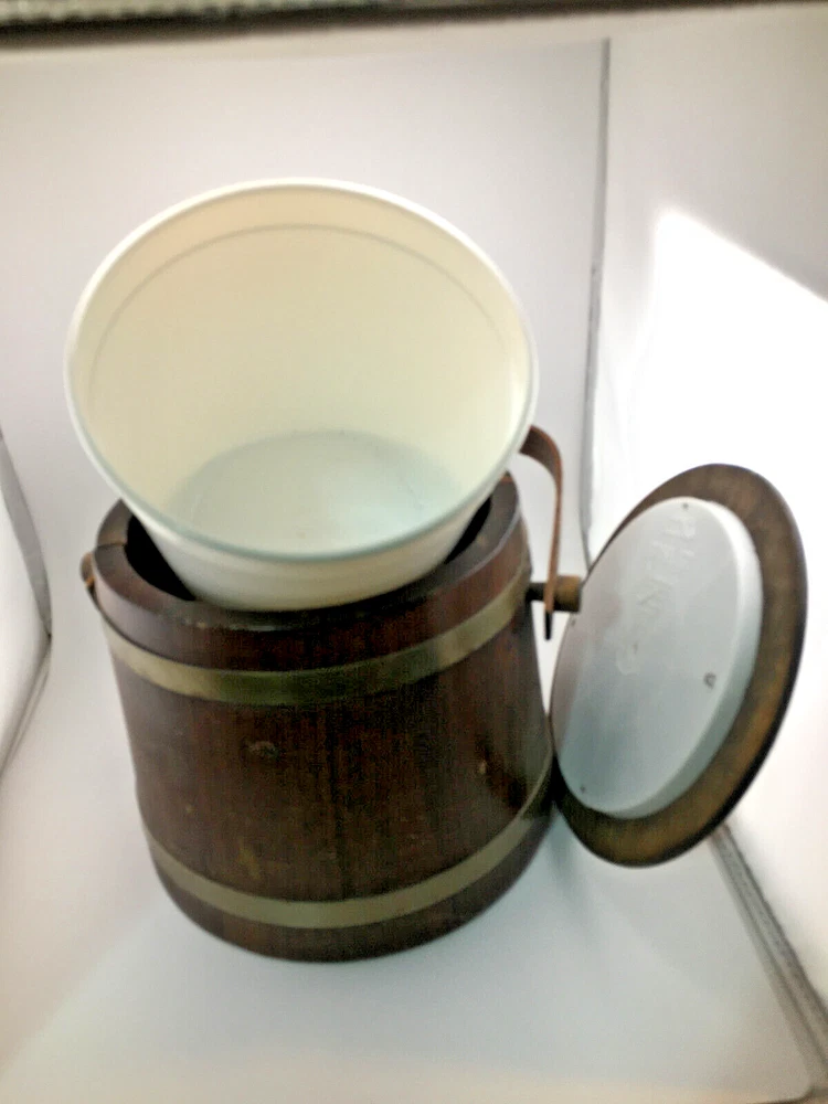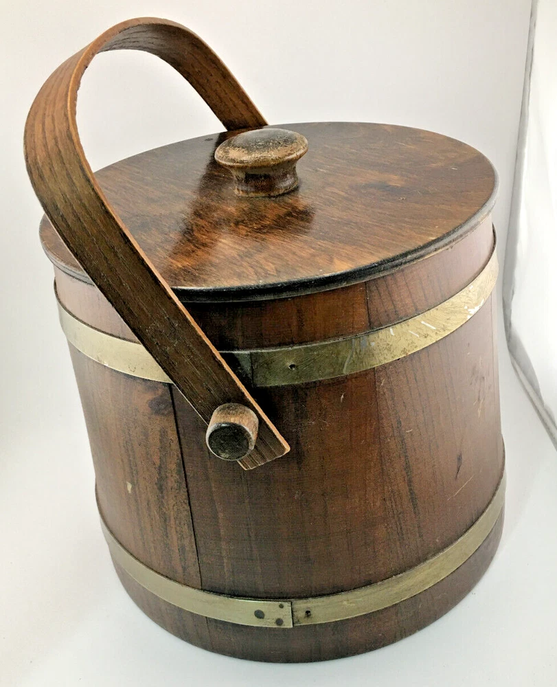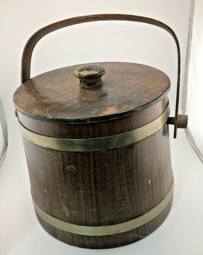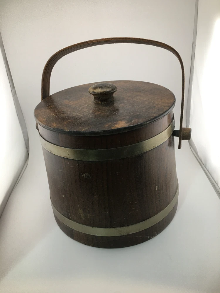 This vintage ice bucket from Basketville is a rustic addition to any collection. Made of medium brown wood and plastic, it features a round shape with a lid/stopper and a swing handle and plastic liner/bucket. The 8.5 inch diameter and 7.5 inch width make it the perfect size for all occasions. The ice bucket is an original piece from the 1980s, manufactured in the United States. It weighs 2.5 lbs. Given the age (c1980's) there are some scratches from use over the years, but otherwise in VG condition. We are downsizing and need to find homes for many of our collectibles, household goods, clothing, books, magazines (all Playboys in plastic sleeves), toys, CD/DVDs and more. All items from our pet & smoke free home. I try to show as much as I can in my pictures, especially if there might be an issue with an item, but if you have any questions, feel free to contact me. When shipping my items, I try to use the method that is the least expensive. I try to use poly bags when applicable so the package will be lighter. I will use boxes when sending anything breakable/fragile. I do use lots of recycled shipping supplies, such as boxes and packing material, again to keep costs down. I do not charge a handling fee. I ship out same day if the mail has not been picked up yet that day or I can get to the post office. If I am unable to get to the post office, I will send the next day at the latest. Not including Sundays and holidays. I do my best to make all transactions as pleasant as possible for both of us. I would greatly appreciate your feedback. If there is a problem, please contact me so I can correct it. Thank you for looking!