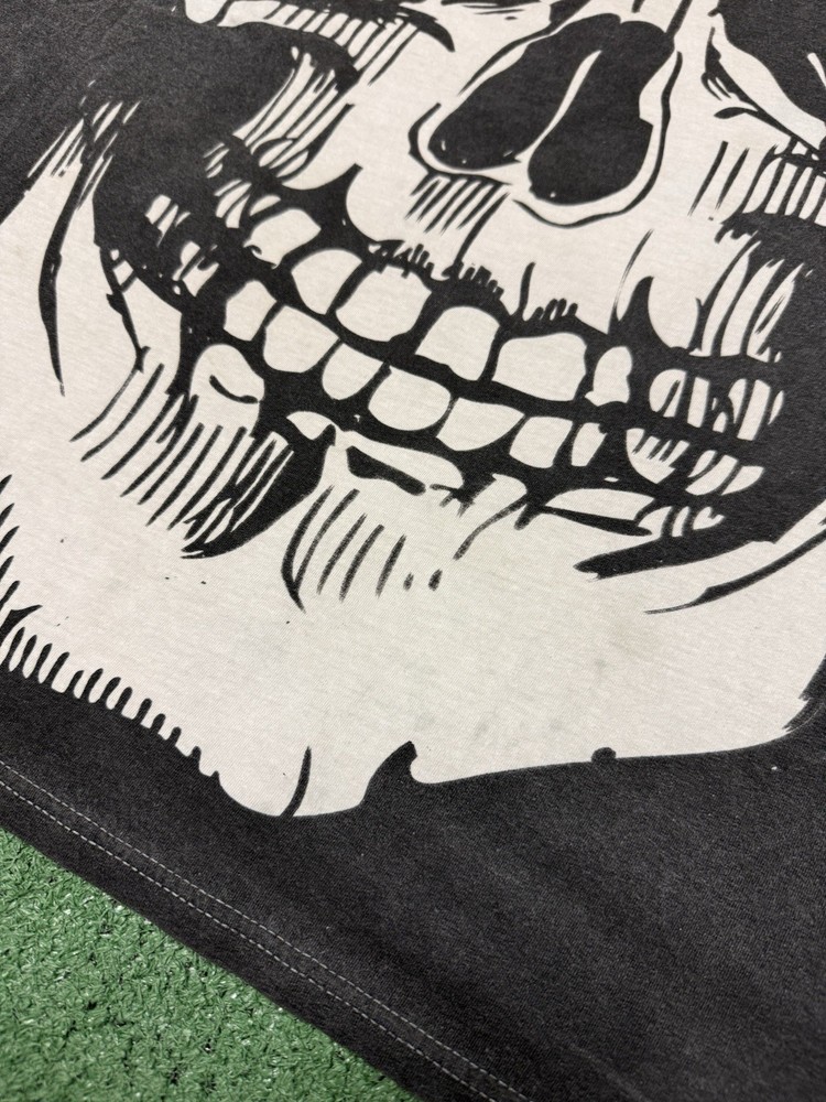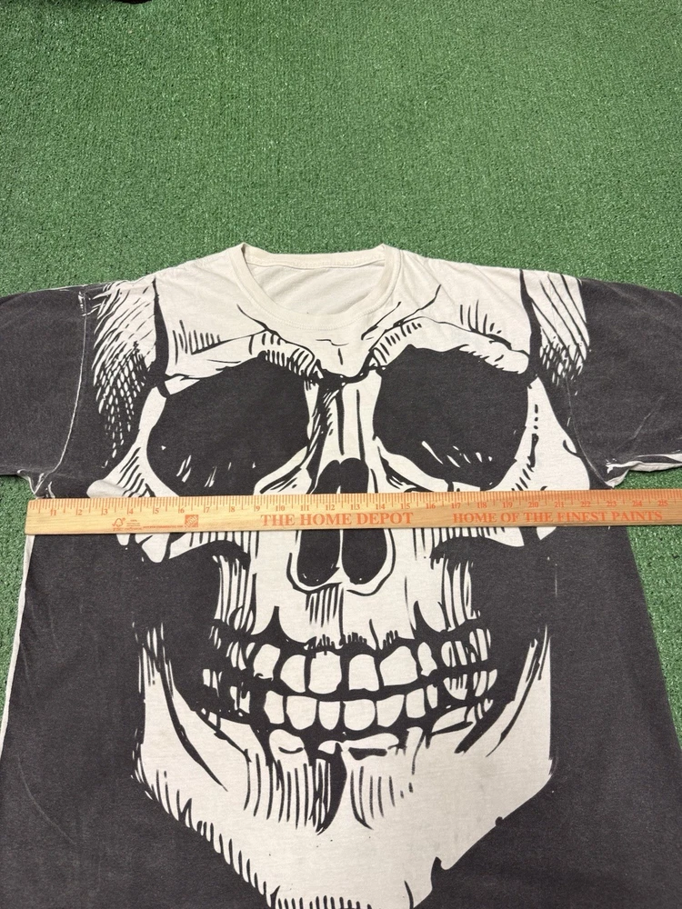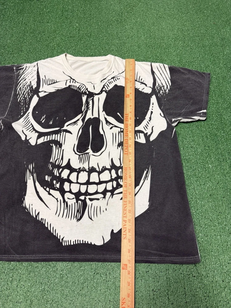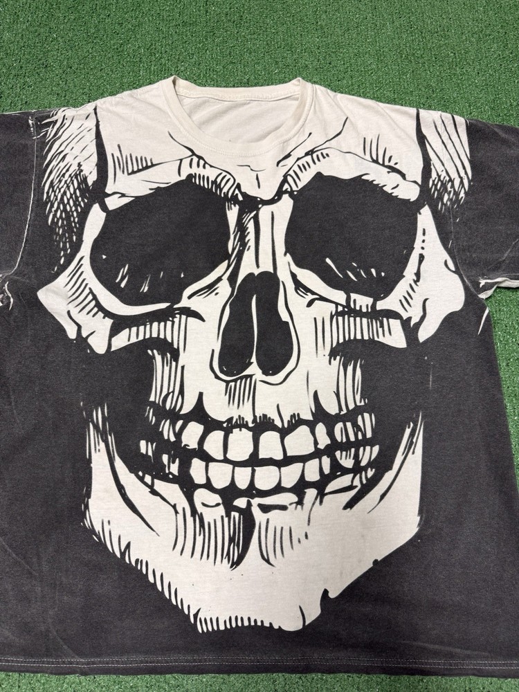 - [ ] This Vintage piece shows minor signs of wear. Minor staining throughout the shirt As shown in pictures. This piece has been washed and is sourced secondhand This Vintage Y2K Skull All Over Print T-Shirt in Men's Size XL is a must-have for fans of grunge and streetwear. The white shirt features a graphic print of skulls, perfect for adding a edgy and punk vibe to any outfit. Made of cotton knit fabric, this regular fit T-shirt is machine washable and features a classic crew neckline and short sleeves. Perfect for all seasons, this shirt is a bold statement piece that will stand out in any wardrobe.
