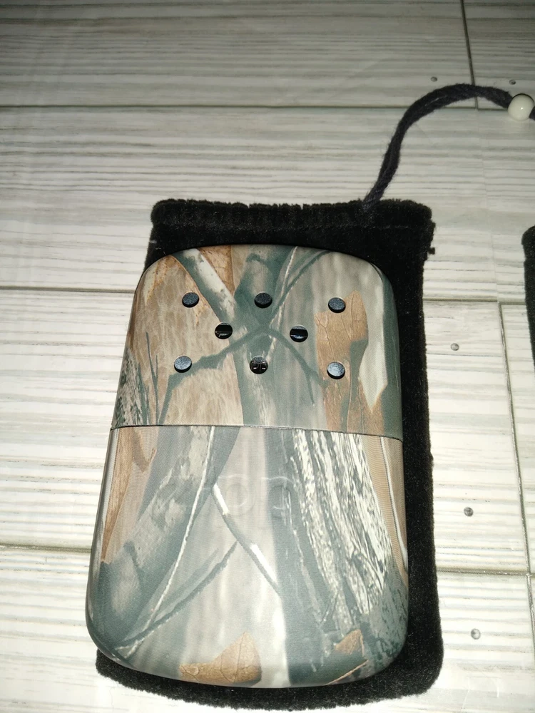 Vintage Zippo Outdoor Camping Hunting Hand Warmers With Camo Print. The caps fit loose. Has wear from age use and storage. See pictures. Sold as is.