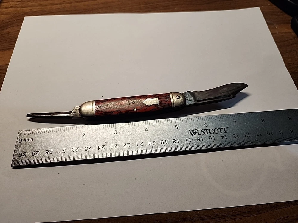 This vintage Hibbard Spencer-Bartlett knife is a must-have for any collector of folding knives. The knife features a drop point, clip point, and punch blade made of carbon steel, with a frame lock for secure use. The handle is made of bone and the knife is manually opened. This original and authentic knife is a vintage piece, perfect for any collector looking for a unique addition to their collection. The knife's multi-color design adds to its appeal and makes it a great conversation starter. Don't miss out on the chance to own this rare piece of history.