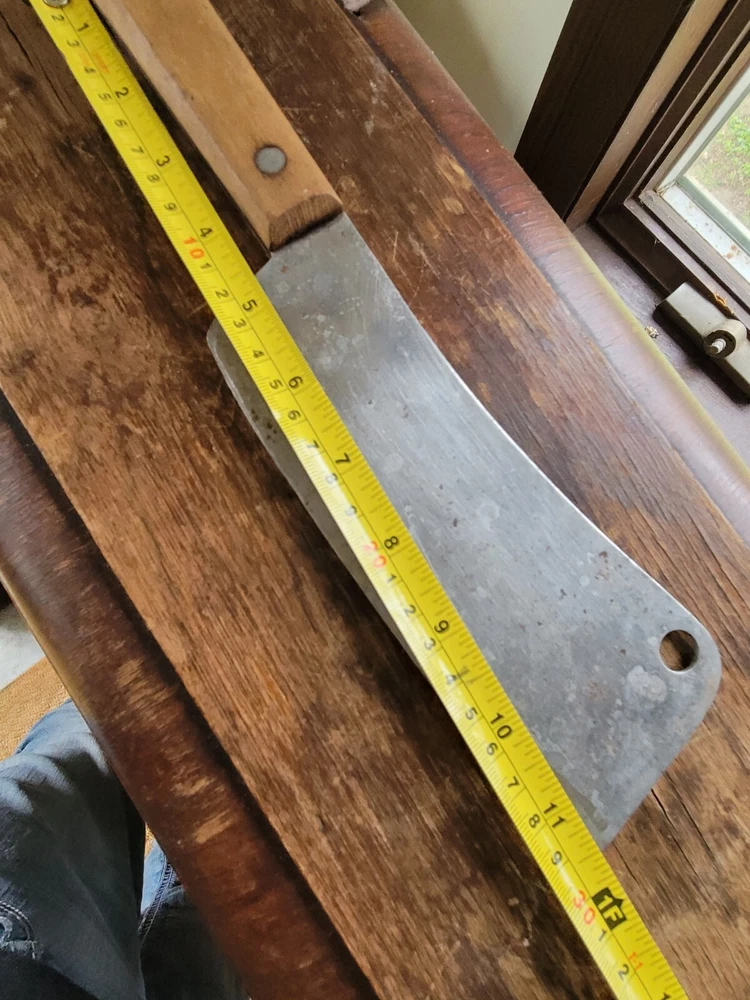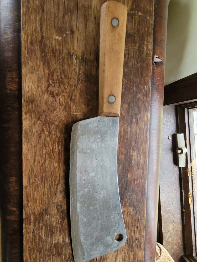 Vintage unmarked meat cleaver knife. 7" blade. 12" long°•. Light stains see photos
