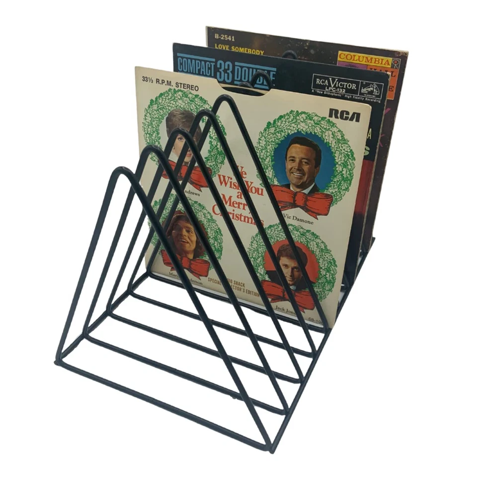 Functional, Simple and Stylish Record Storage and Display Solution When you purchase the Vinyl Record Holder you get an Elegant and Sturdy LP Stand that will enhance your Turntable area 2 Pack for added storage space Minimalist design adds class and functionality coated Wire Rack is safe and won’t scratch your Records Easily Flip to find your favorite album Stylish and Durable, will not crack or bend The best addition to Organize your Vintage Collection Fun to Use, Safe and Reliable! Solid construction will last a Lightweight will fit anywhere Easy to set up, no tools required. Have your favorite albums handy A must have when you want to tastefully display your Cherished Lp’s Versatile and Effective Space saving, Steady Table or floor Display Unique Industrial design will heighten your LP listening area Our Best Record Storage at a great price! No Questions Asked Total Satisfaction ! If you are not 100% satisfied for any reason, we will replace your Record Storage Holder for free or the full purchase price, No hassles and No questions asked. *provided exclusively by authorized sellers So order yours NOW! In fact consider getting , it makes a Perfect Gift for your Record Collector Friend! Space saving vinyl record holder, 9 slots iron shelf holds up to 33 records right next to your vinyl player. Always keep your Vinyl standing in an upright position as lying them on top of each other produces pressure that might warp your vinyl making them unplayable Your new album holder - album stand requires no assembly, easy to set up on table top or Floor, Cute minimalist design functional Record Holder for albums and file holder for desk. Measures 10.3” x 7” x 7” easily holds 33+ Records. Outstanding desktop decoration for your home or office. 2pack for extra storage space Easy access to your vintage collection, cool open design record organizer makes it simple to find your play of choice. Useful when you need to add functionality to a cabinet, or your office desk as a file organizer stand, notebook holder organizer, wire magazine holder or desk folder organizer Convenient and durable coated steel record holder stand, vertical triangle file holder, folder organizer for desk, book and magazine sorter and divider. Safe for any environment, makes a great gift for any serious audiophile, DJ or Vinyl Music Enthusiast Versatile triangle storage vinyl stand can also be used as magazine stand, wire file organizer, book organizer for desk, file rack, folder desk organizer, notebook and newspaper holder, desk file holder, and of course your go to record rack for albums. 2 Pack for even more records!